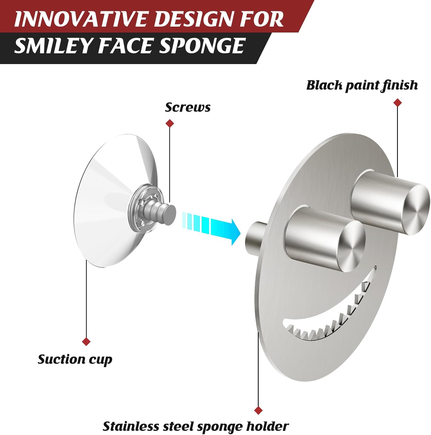 - 304 STAINLESS STEELS:The smiley sponge holder is made of SUS 304 stainless steel material,durable,not easy to deform and not rust.You can place this sink caddy on your kitchen or bathroom sink.Scrub sponge holder can hold all standard smiley sponges as well as any smiley limited edition sponge