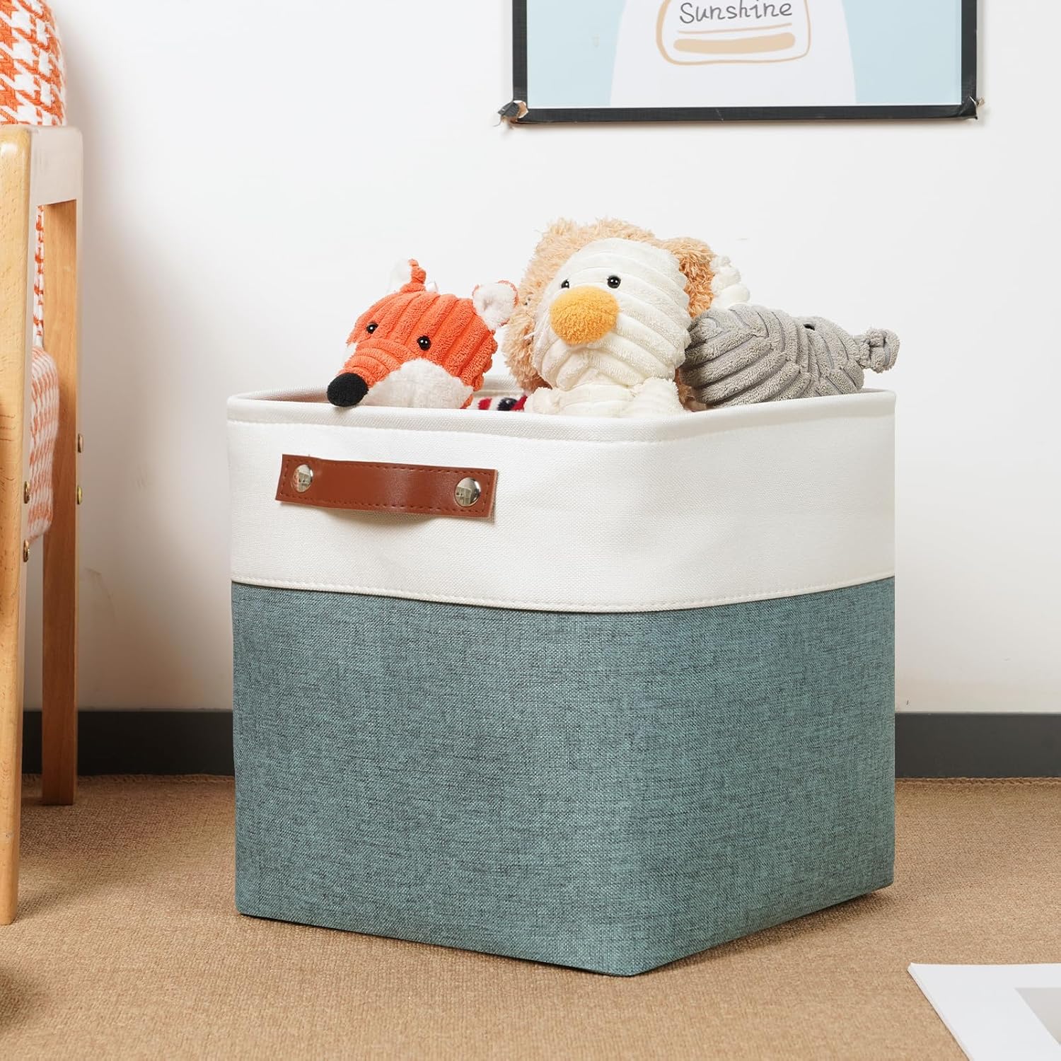 DULLEMELO 11x11 Cube Storage Bins for Organizer, Foldable Cube Storage Bins for Organizing Home Office Closet Shelves, Fabric Cube Baskets for Home Organization(4 Pack - White&Deep Green)