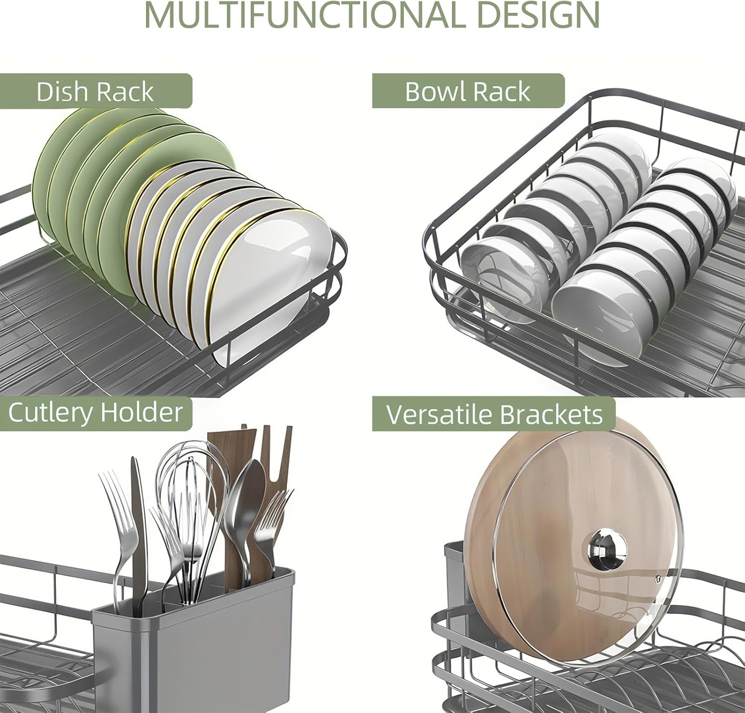 Dish Drying Rack Stainless Steel Drying Racks for Kitchen Counter Large Capacity Storage Racks with Drainboard Curlery Holder Gray