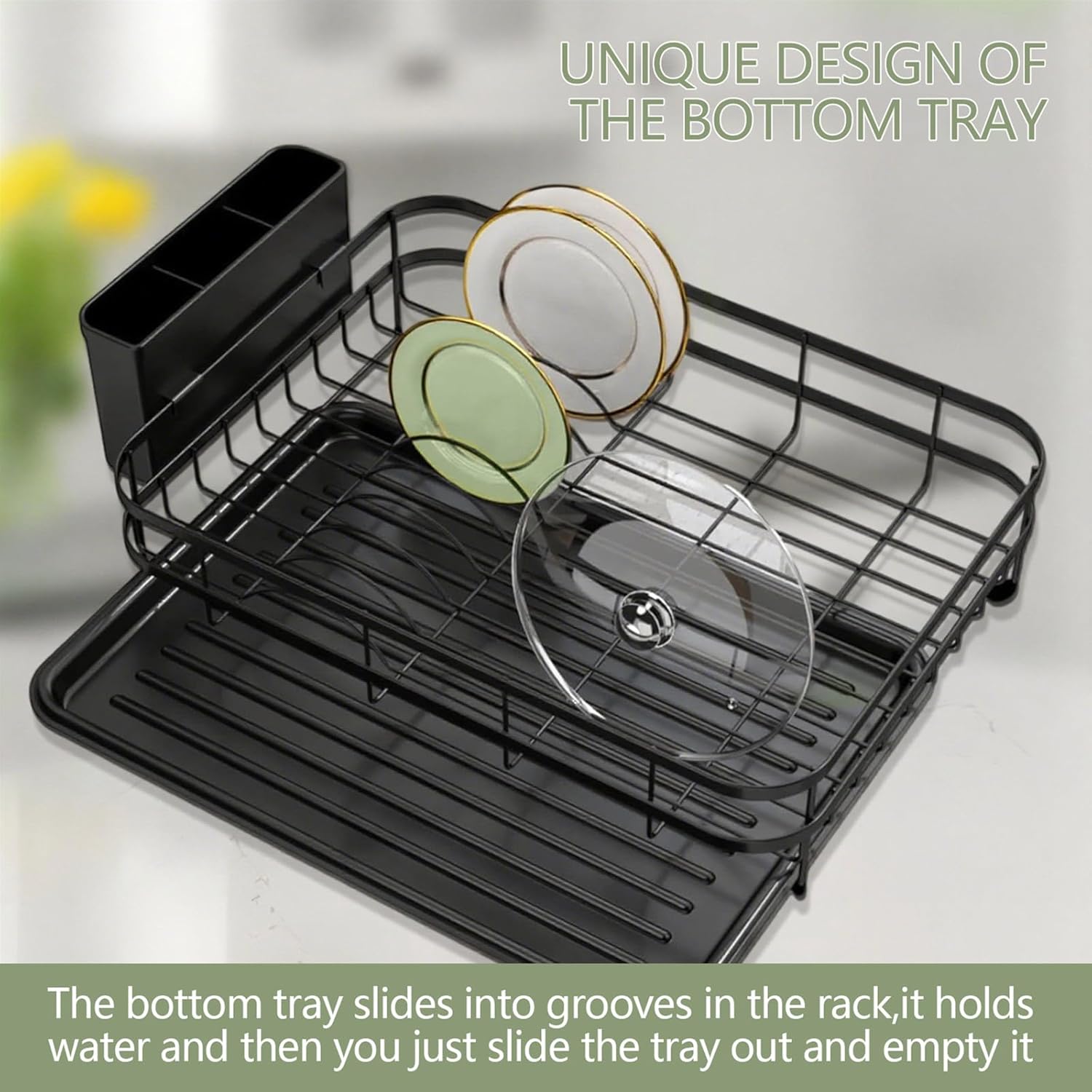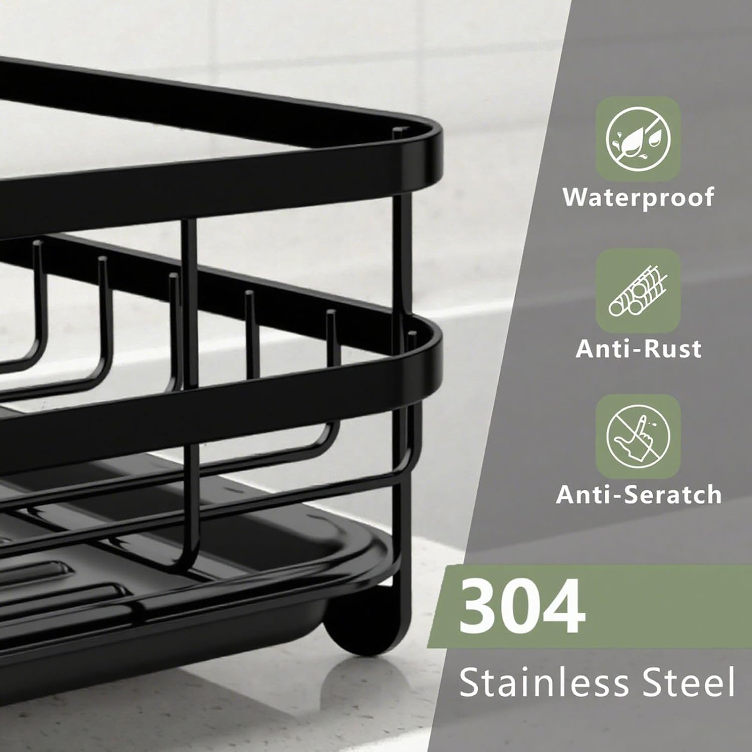 Dish Drying Rack Stainless Steel Drying Racks for Kitchen Counter Large Capacity Storage Racks with Drainboard Curlery Holder Black
