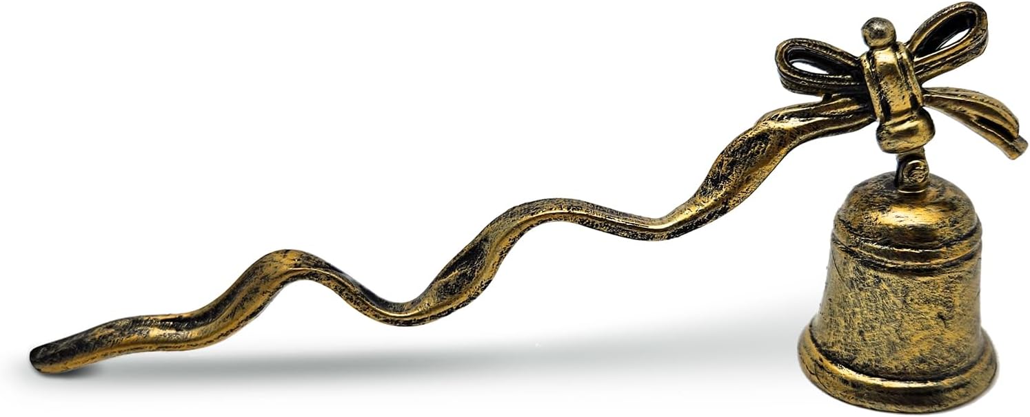 - [Elegant Bell-Shaped Design with Bow Accents]This charming candle snuffer features a graceful golden bell-shaped extinguisher adorned with delicate bow detailing. The whimsical ribbon-wrapped handle adds a touch of festive flair, making every candle extinguishing moment feel like a holiday celebration.