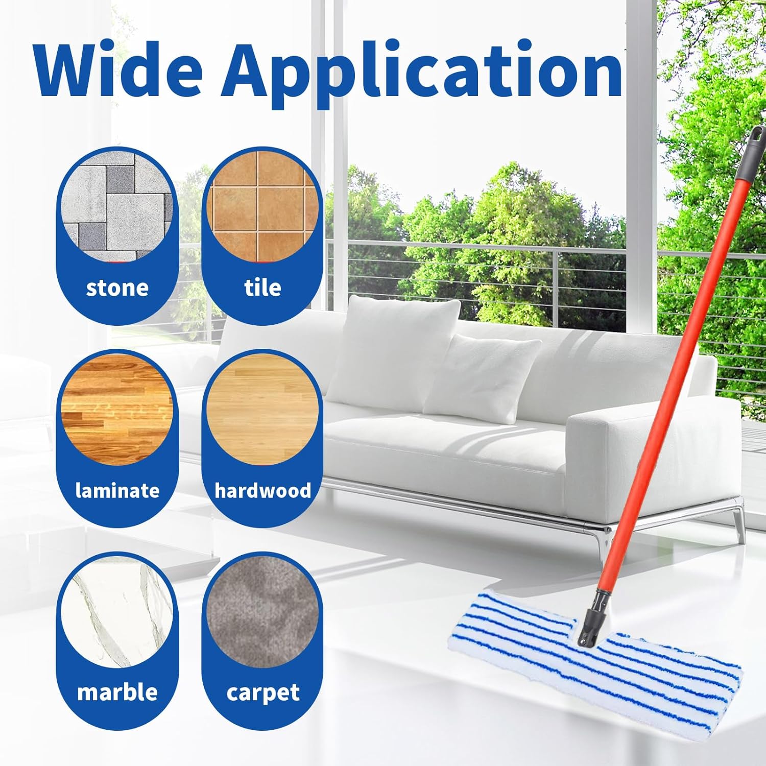 - Wide Application: Dust mop pad refills are suitable for using on all types of hard floor surfaces in homes, work, schools and much more. Size of Mop Pad-Length 18.5in, Width 6in, Fits most 16" dust mops. You will get 4 pack mop replacement heads.