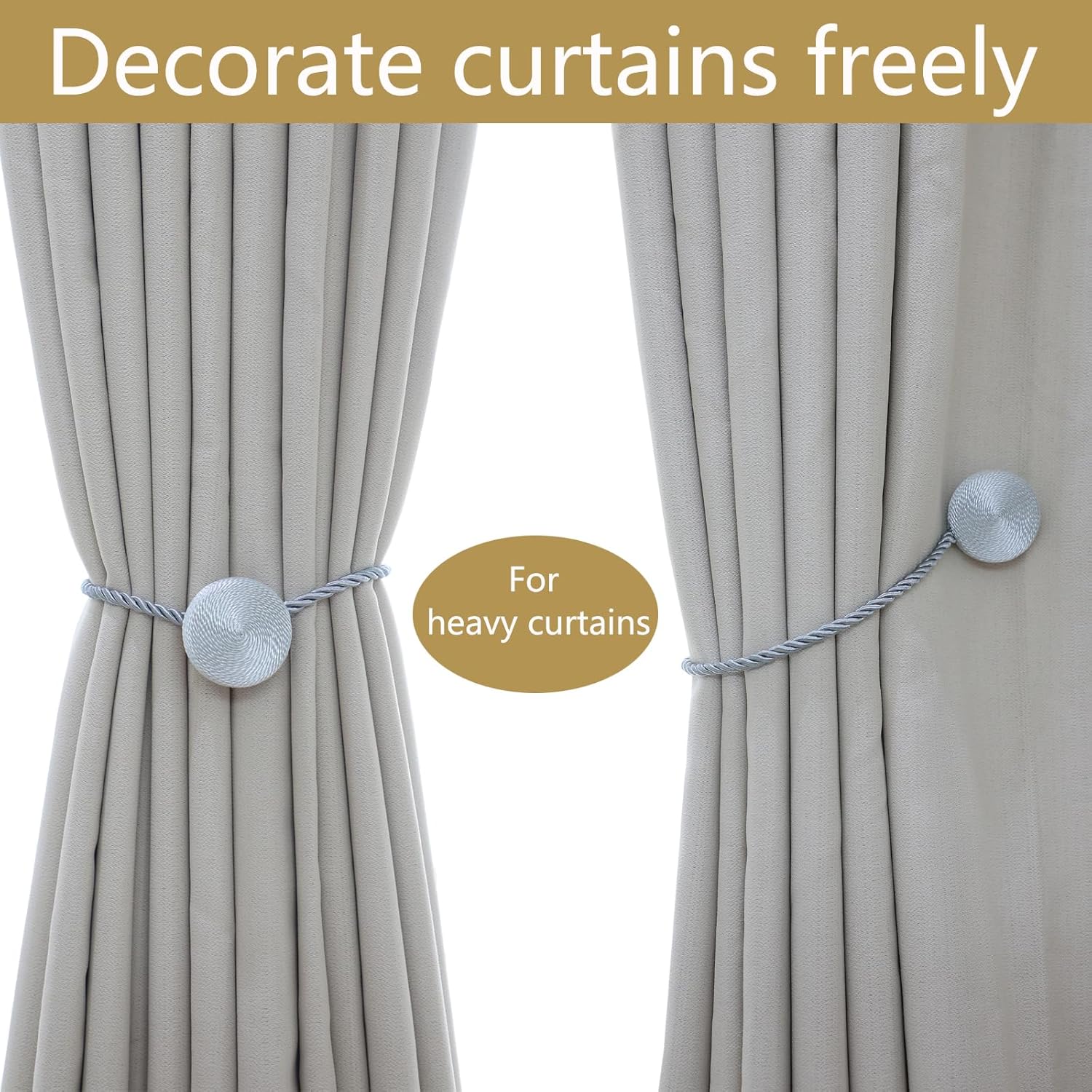 - π― Versatile Styling Anywhere: Versatile for Any Room & Curtain: These magnetic curtain tiebacks perfect for thick blackout drapes or sheer curtains, used fully tied or half-tied. Perfect for living rooms, bedrooms, offices & bathrooms. European braided design blends with farmhouse, modern, or classic decor. Holds thickest curtains yet gentle on fabrics.