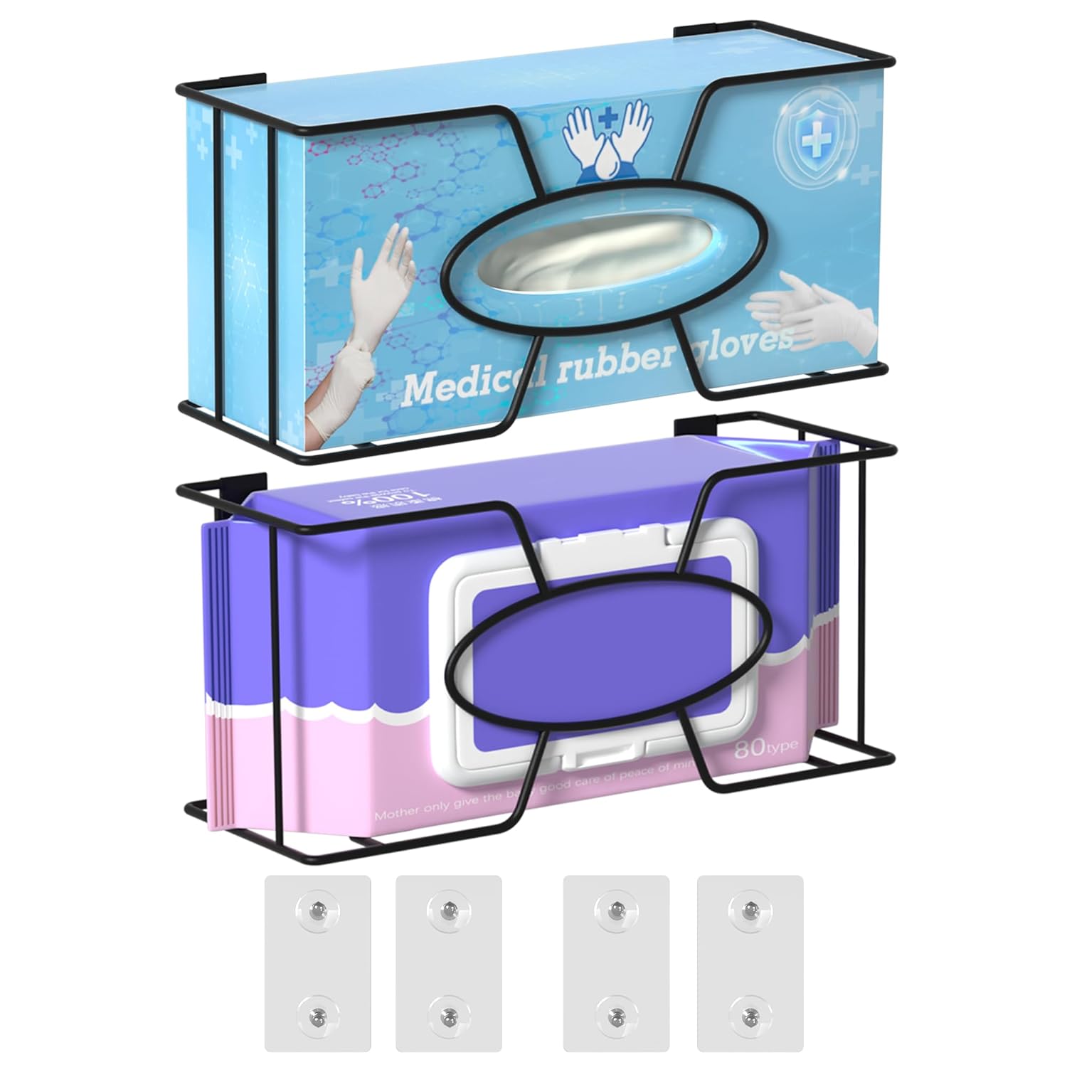 Glove Box Holder for Wall Mount, 2 Pack Disposable Glove Dispenser, Metal Box Organizer for Rubber Latex Gloves Organizer Facial Tissue - Two Size (Large+Small)