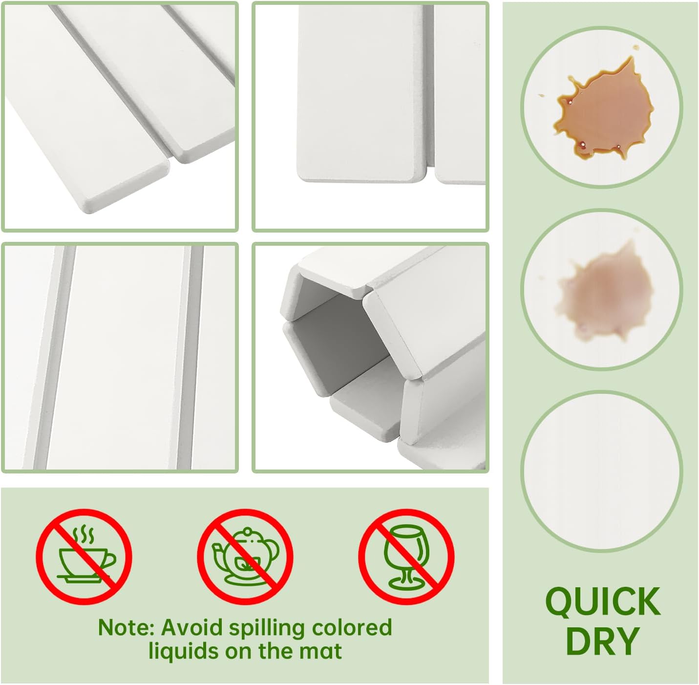 - Foldable and Space-Saving Design: The collapsible design allows quick dry stone mat kitchen to be conveniently rolled or folded for easy storage in drawers or cabinets, making stone drying mat for dishes an excellent space-saving solution for any home