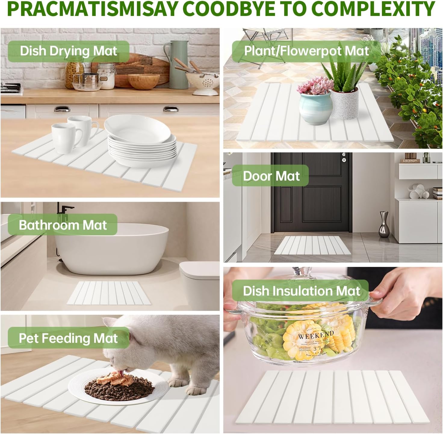 - Versatile Multi-Purpose Use: Instant drying mat for drying dishes, cups, or utensils in the kitchen. Doubles as a heat-resistant mat, bath mat, pet feeding mat, plant tray, even an outdoor mat for your porch. A practical and stylish addition to any space