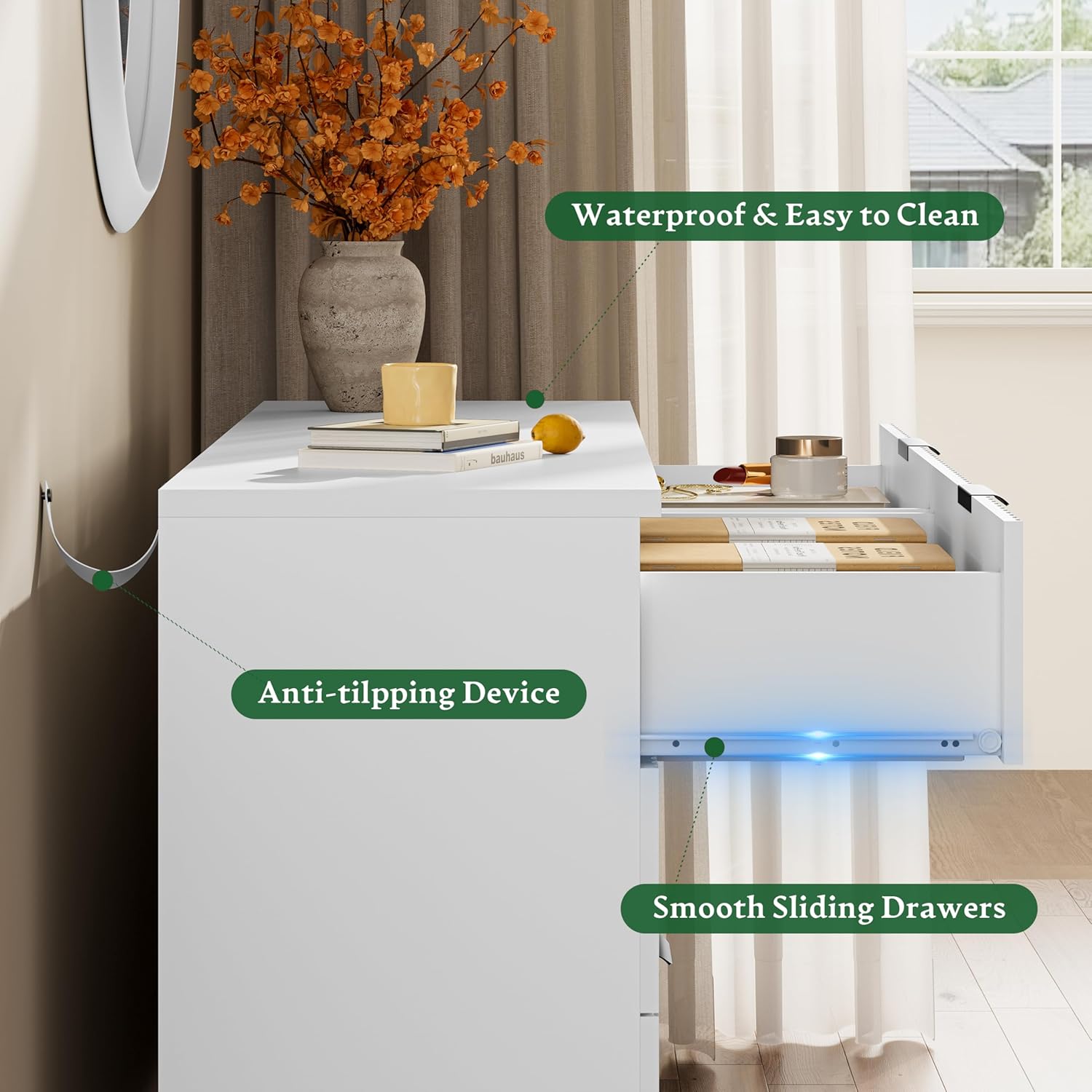 - 【Solid Material & Study Construction】The dressers & chests of drawers are constructed from optimal MDF, P2 engineered wood and coated metal handles which not only have exquisite texture, but also ensure long-term use and are scratch resistant. Each drawer holds up to 35 lbs and the thickened tabletop can support up to 150 lbs. For easy cleaning, just wipe with damp cloth and get it air-dried