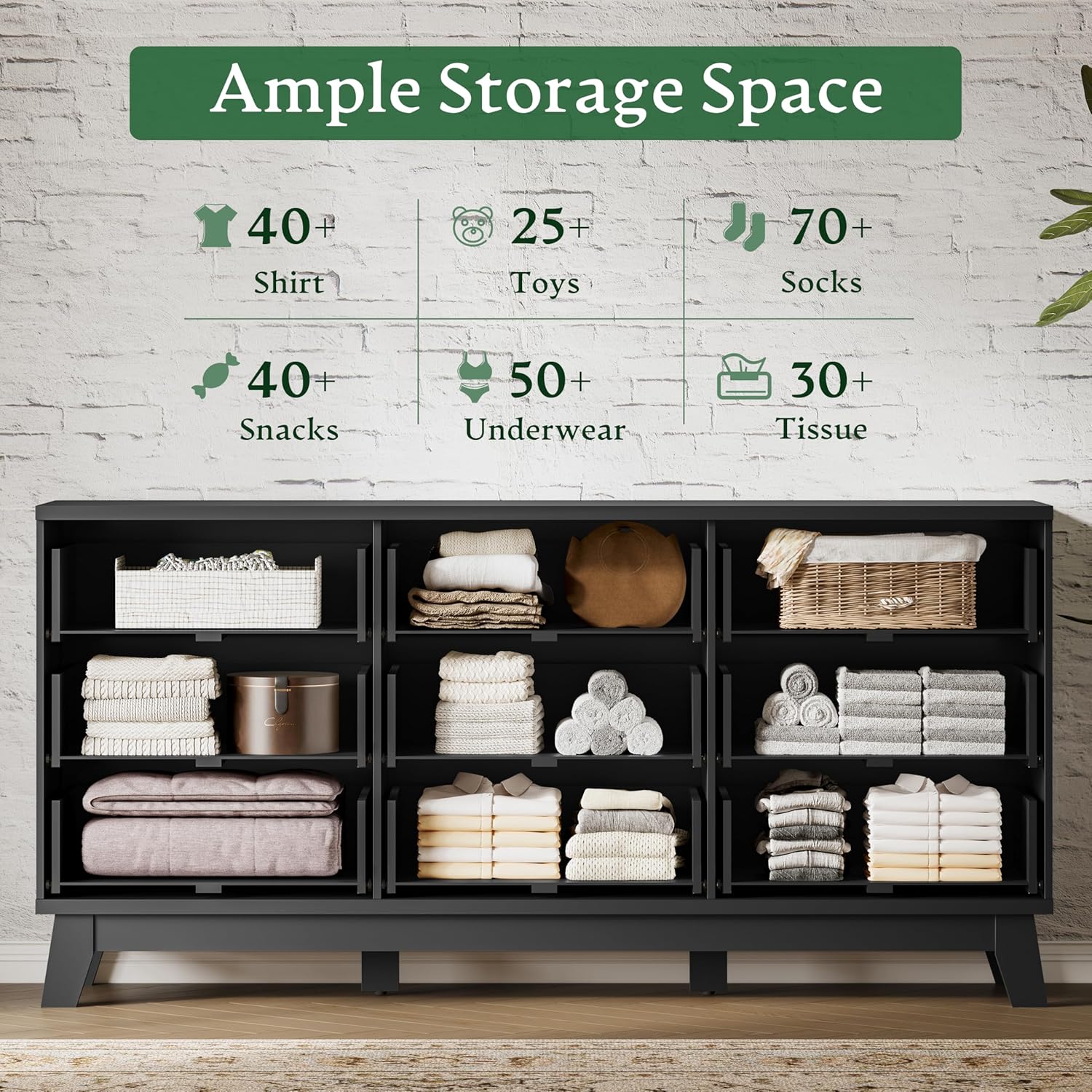 - 【Versatile Wood Dresser】Except for being a wooden dresser in your bedroom or as a console table in your living room, this storage cabinet also can be used as a nightstand or side table. This long dresser could easily fit in various spaces such as the living room, bedroom, hallway, entryway and closet. Its multifunctional design can be perfectly integrated into any room in your house