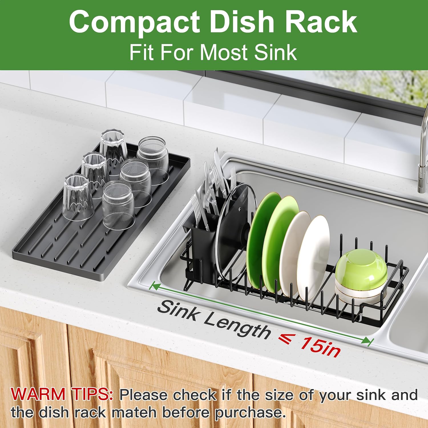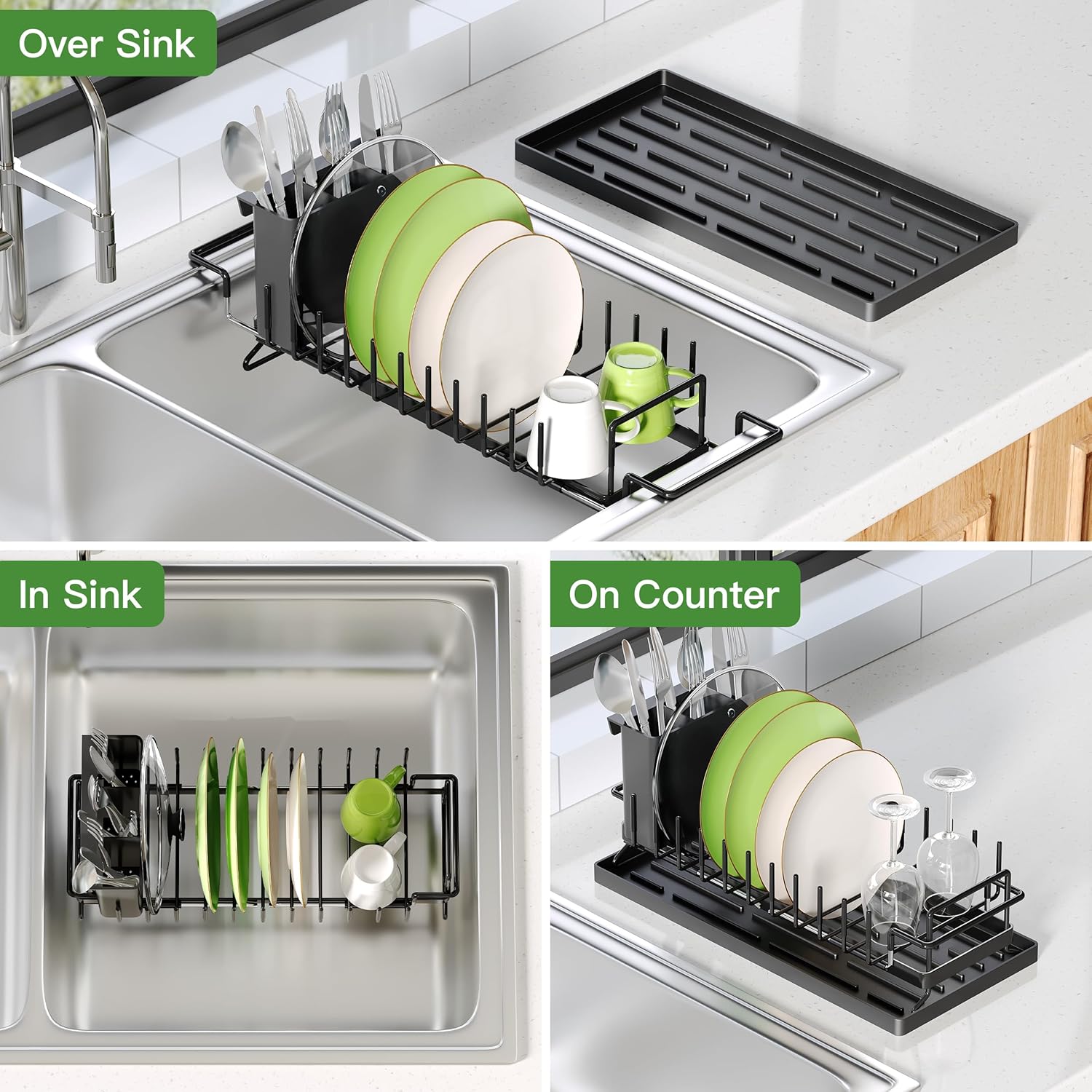 - 📏Small Space Kitchen Solution: This compact dish drying rack works over sinks, inside sink basins, or with tray on counter. Perfect small in sink dish drying rack that maximizes vertical space for precious kitchen areas.