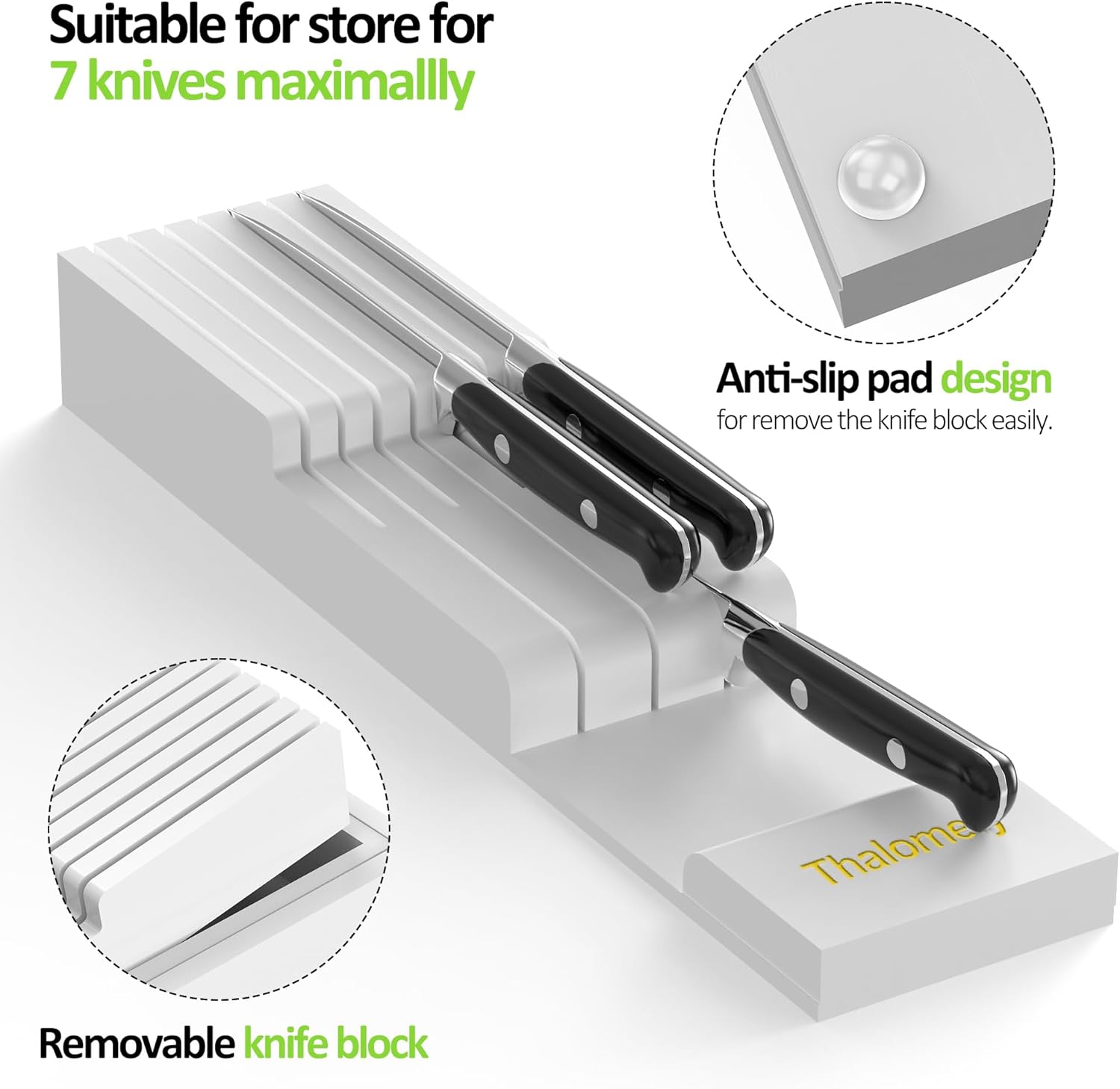 - Removable Knife Block Included: Includes a removable knife block (15.35" x 3.23" x 1.54") with four anti - slip silicone pads, holding 7 knives. It offers a safe, convenient storage solution and can be easily detached or reinstalled as needed.