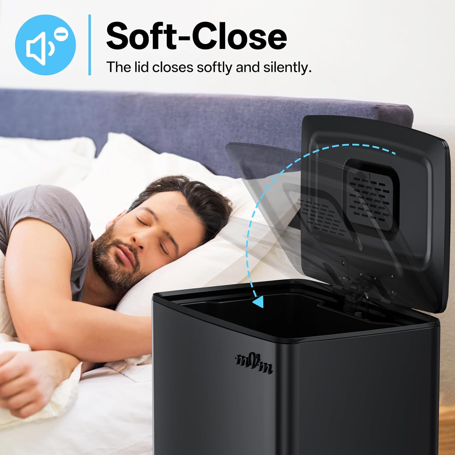 - Odor seal: The mVm trash bin is equipped with a carbon fiber filter that absorbs and neutralizes odors inside the bin, and the lid closes tightly to prevent odors from escaping.