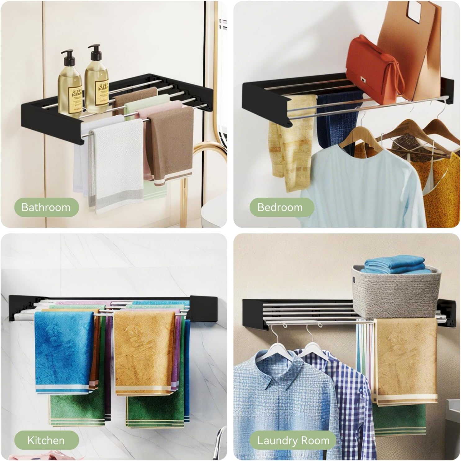 - SPACE-SAVING DESIGN: Wall-mounted drying rack folds flat against the wall when not in use, perfect for small laundry rooms, bathrooms, or utility spaces