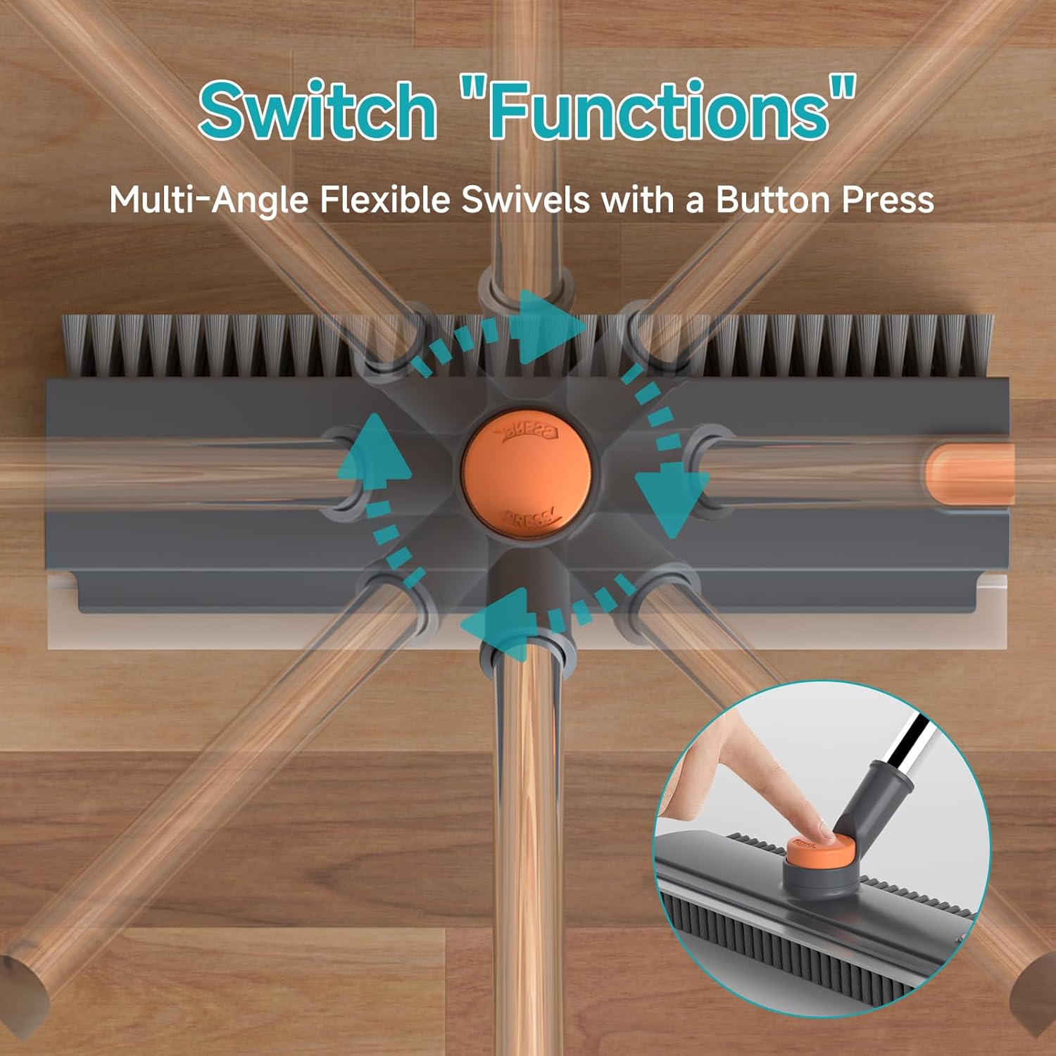 - 【Durable Materials for Wet/Dry Use】The PVC bristles are tough enough to handle regular use but gentle on tile, hardwood, and concrete floors; the stainless steel pole won’t rust, even when used in damp bathrooms, and the silicone scraper stays flexible to leave floors streak-free. Easy to clean and hang after use.