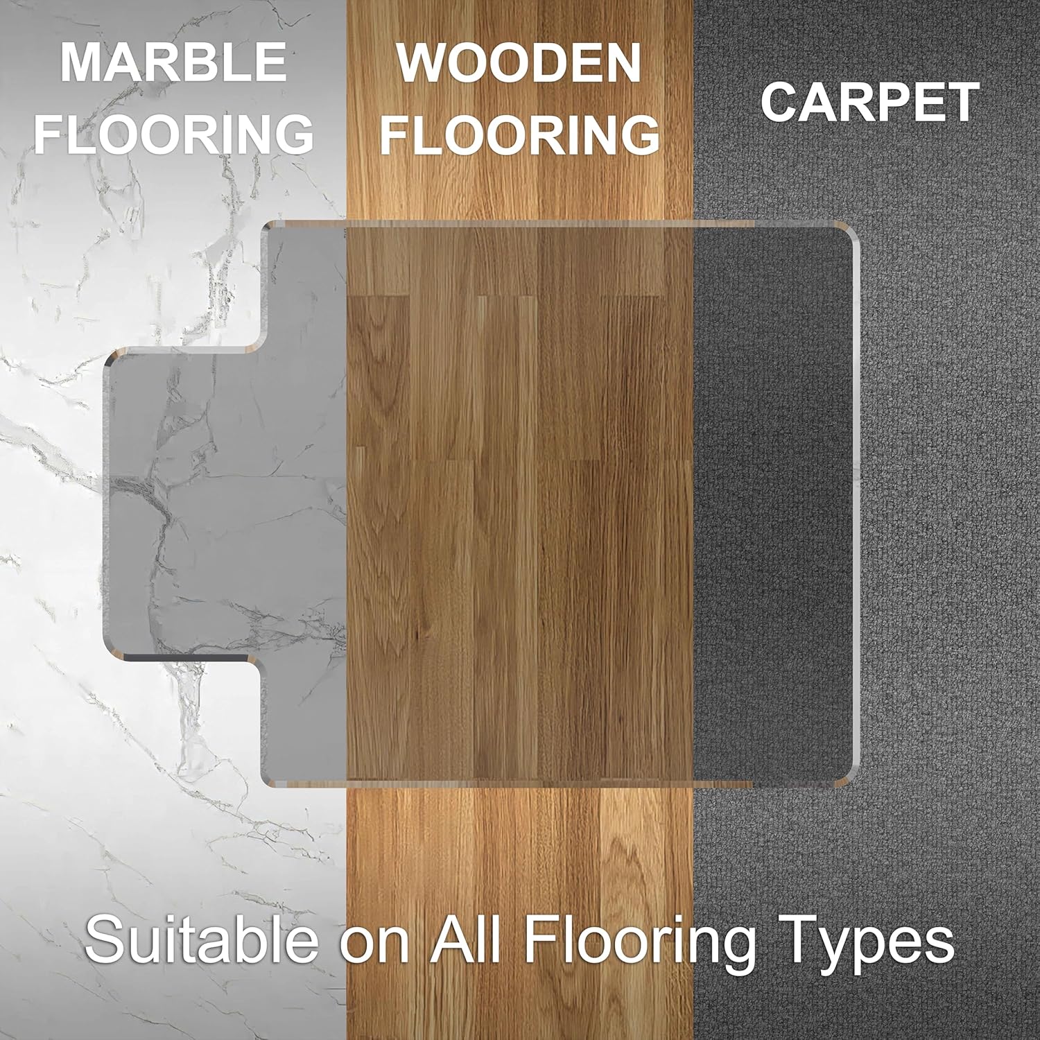 - 【Beveled Edge】Clear office Chair Mat with lip is Innovation acrylic sheet undergoes edge beveling, featuring beveled and rounded corner designs that ensure a smooth and safe surface. This heavy-duty curved edge design is not only functional by preventing the mat from breaking or cracking, while simultaneously enhancing the overall aesthetics and comfort of your space.