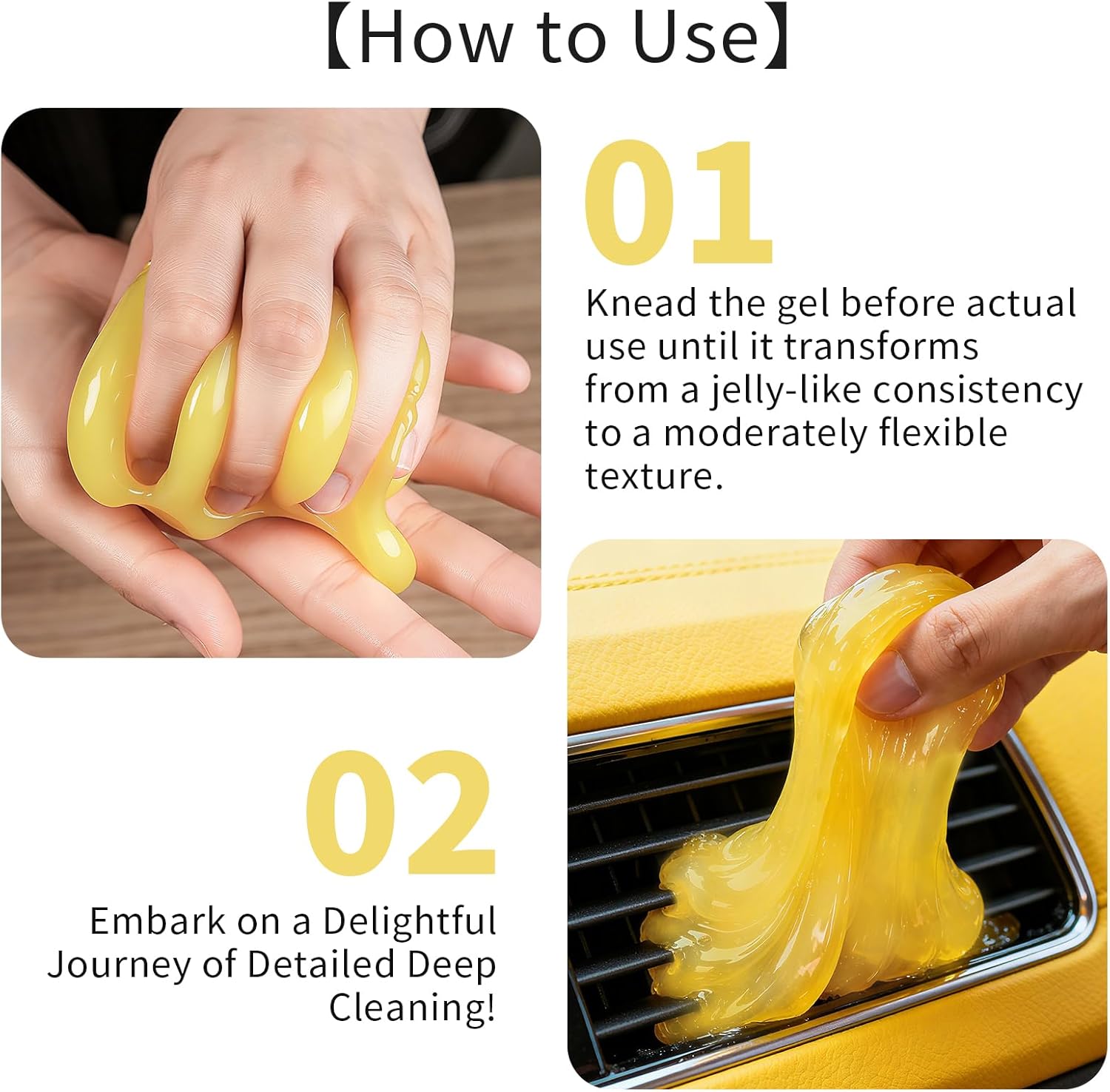 - EASY TO USE.Simply take out the gel, knead the gel before actual use until it transforms from a jelly-like consistency to a moderately flexible texture.(It can activate the deep-cleaning properties of the cleaning gel), and press it onto the area you want to clean,and embark on a Delightful Journey of Detailed Deep Cleaning.【Note】The current version is a summer version and the texture is like jelly when first opened, but please rest assured that this has no negative impact on the quality. Just rub it vigorously until it turn to the soft texture before use and it can be used normally.
