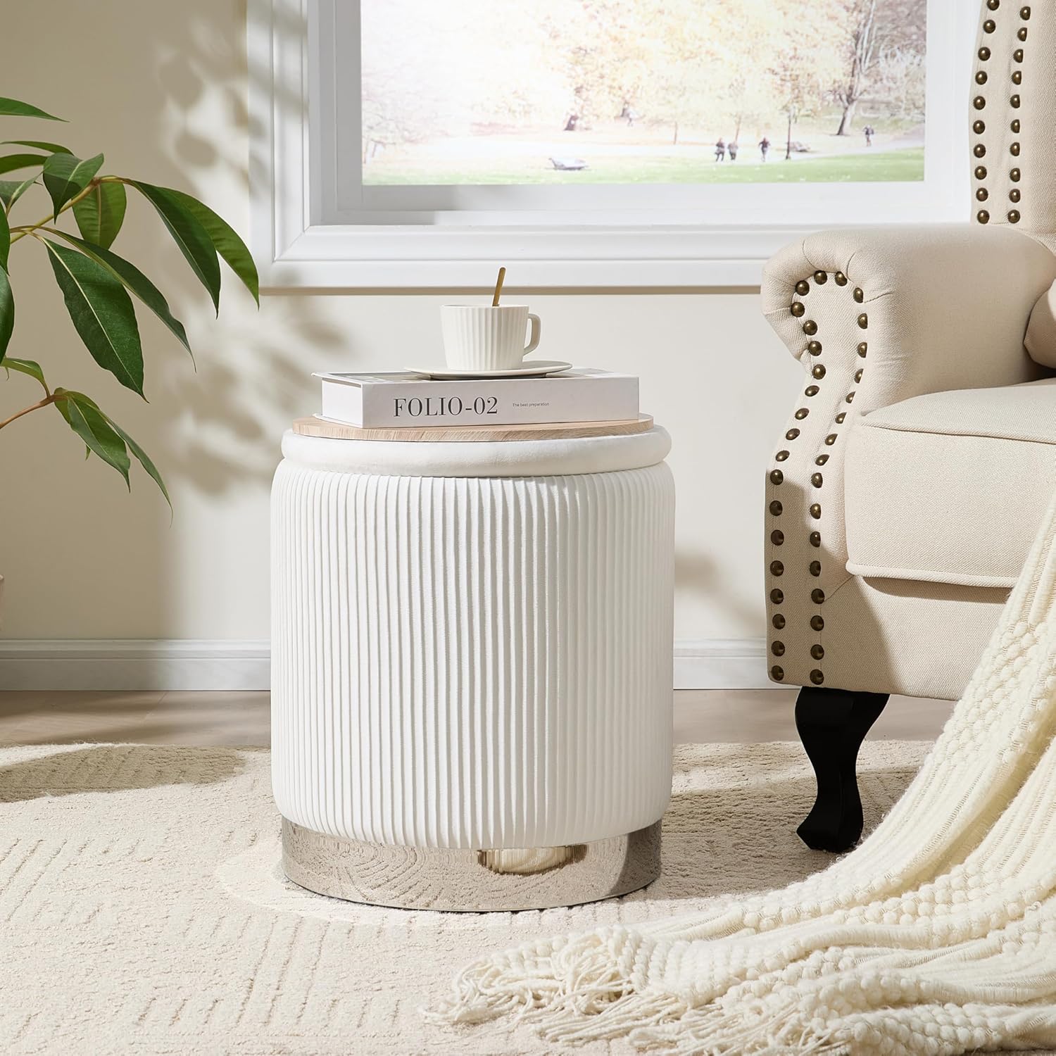 - 【Perfect Space-Saving Set of 2】This round storage ottoman set includes two thoughtfully sized pieces designed to stack neatly together. The larger ottoman measures 14.76" x 14.76" x 17.32", while the smaller one is 12.6" x 12.6" x 14.17". This smart design offers a convenient space-saving solution, perfect for keeping your living room, bedroom, or entryway organized and clutter-free.