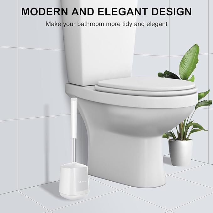 - ERGONOMIC HANDLE & ELEGANT APPEARANCE:Powerful long handle toilet brush, ergonomic design, more comfortable to hold and effectively control the cleaning effort, stylish appearance, compact and convenient, can also be used as a bathroom decoration