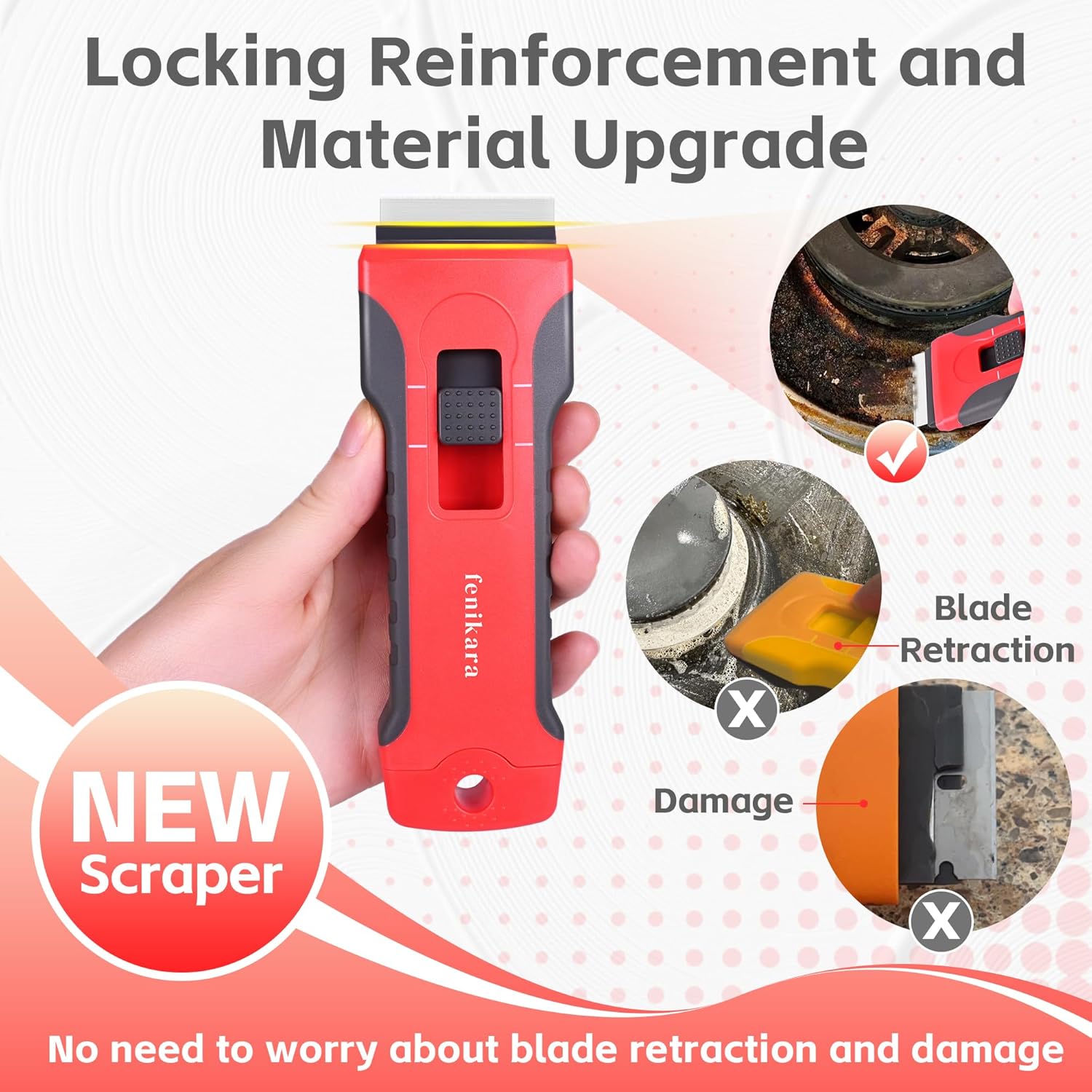 - 【Upgraded Retractable Magnetic Razor Scraper Tool】 Experience unparalleled performance with our upgraded retractable plastic scraper. Engineered with premium materials and a refined internal structure, it ensures smooth and reliable operation without slipping or retraction issues. The reinforced core provides exceptional durability, making it perfect for heavy-duty cleaning tasks on various surfaces.