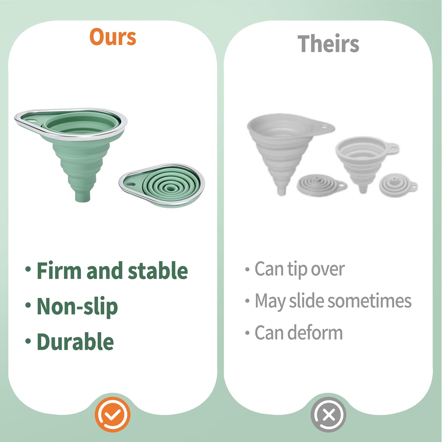 New Upgraded Small Silicone Collapsible Funnel Set with Stainless Steel Rim, 2 Pack Kitchen Gadgets Accessories for Filling Bottles,Dry & Liquid Ingredients