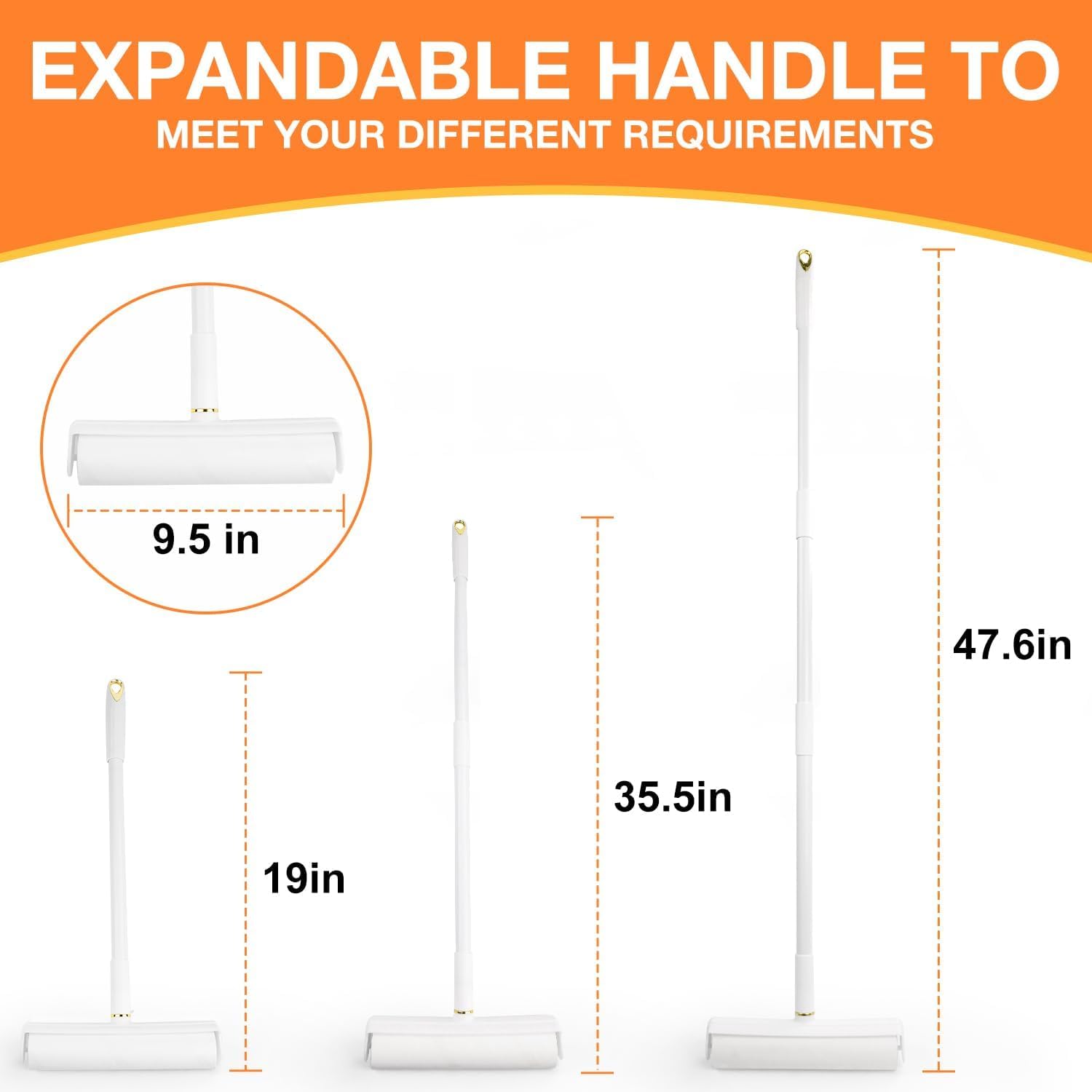 - 4-POSITION ADJUSTABLE HANDLE (7.9" TO 47.6"):Achieve comfortable cleaning with the telescopic handle featuring 4 settings: 7.9" (compact storage/counters), 19" (furniture), 35.5" (standard floor), or 47.6" (high reach). This versatility suits users of all heights or mobility levels, reducing bending or straining. Effortlessly access ceilings, under beds, sofas, and behind appliances. Ideal for individuals with back considerations or tall users.