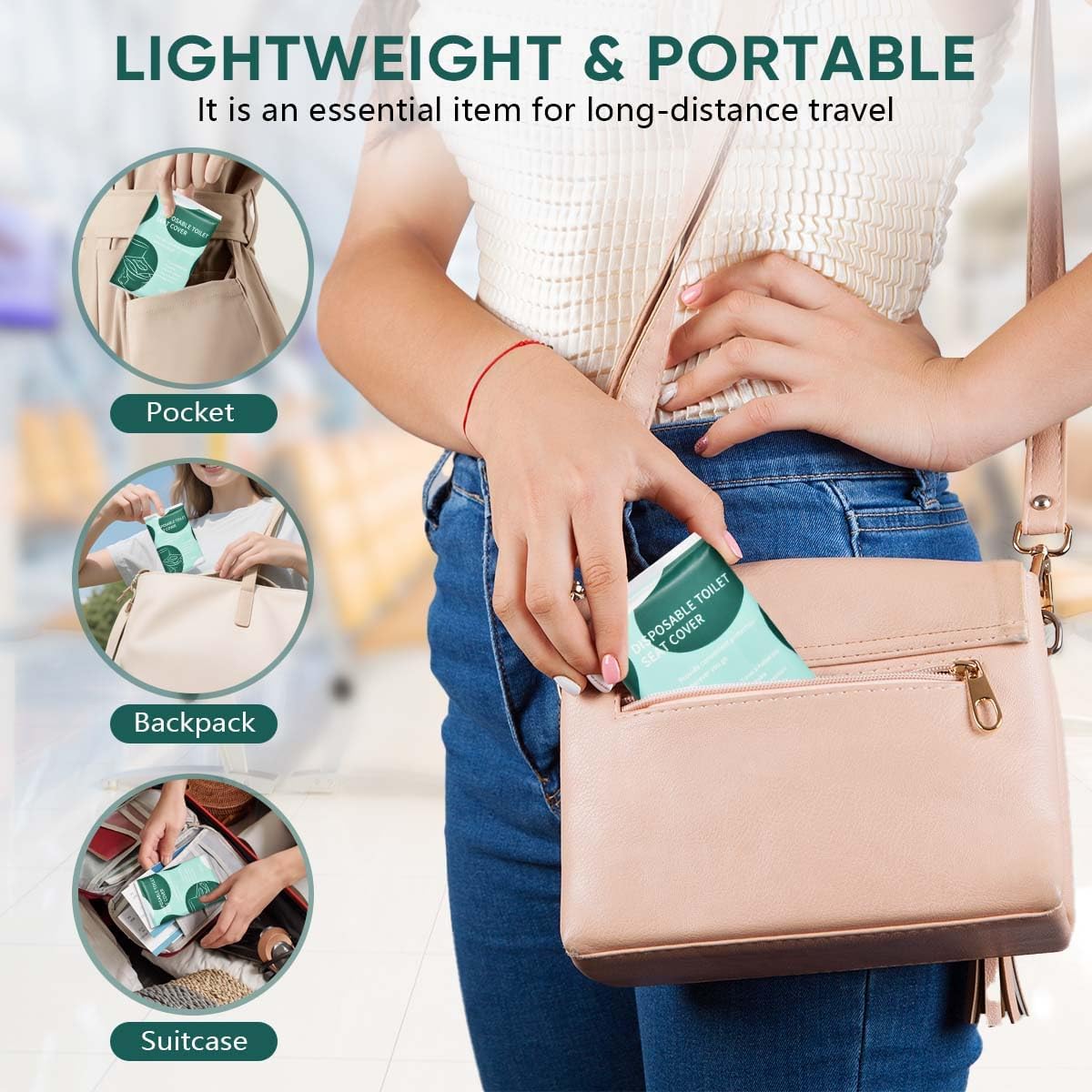 - Easy to Carry: Disposable flushable toilet seat cover is designed for mothers, travelers and commuters. Lightweight and portable, individually packaged, can be put into wallets, backpacks, tote bags, carry-on luggage, etc., a must-have item for long-distance travel, ensuring extreme hygiene during the journey