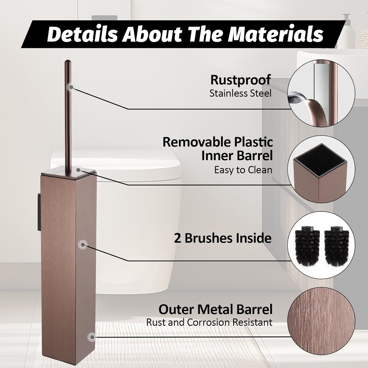 - Durable & Rust-Resistant - Made with an aluminum alloy cup and stainless steel handle, this toilet brush is designed to resist rust and withstand humid environments.