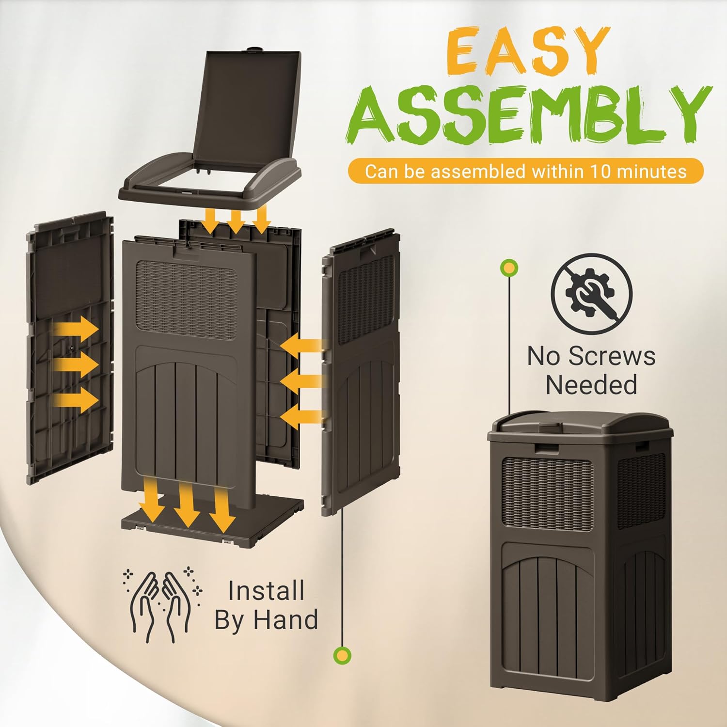 YESHOMY 2 Pack Outdoor Trash Can with Lid, Garbage Bins for Garden, Porch, Home and Kitchen, Brown