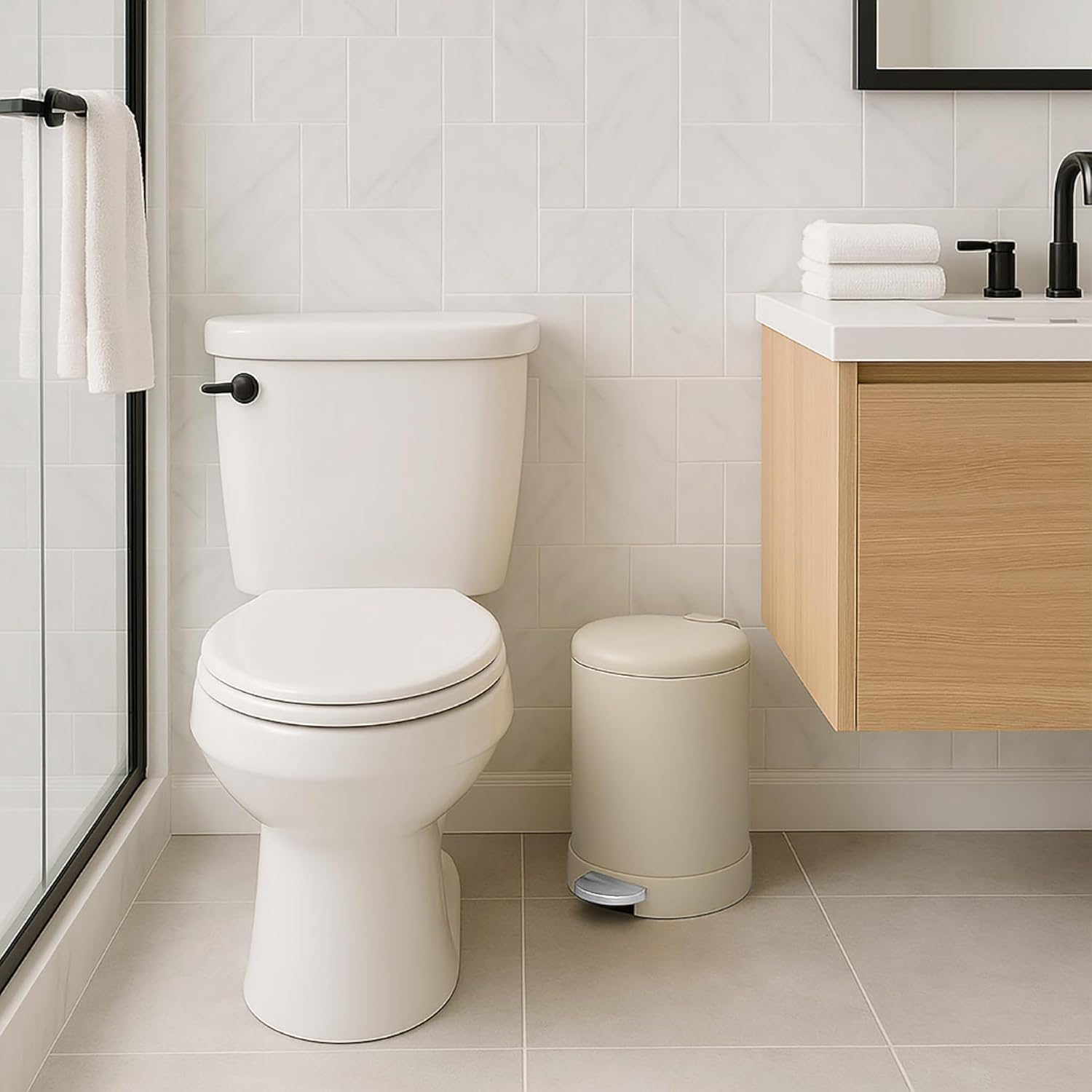 - SMALL TRASH CAN WITH LID - The 1.2-gallon capacity makes this compact trash can the perfect size for rooms with limited space. Makes a great office trash can for near desk, lidded bathroom wastebasket, and tiny step can for apartment kitchens.