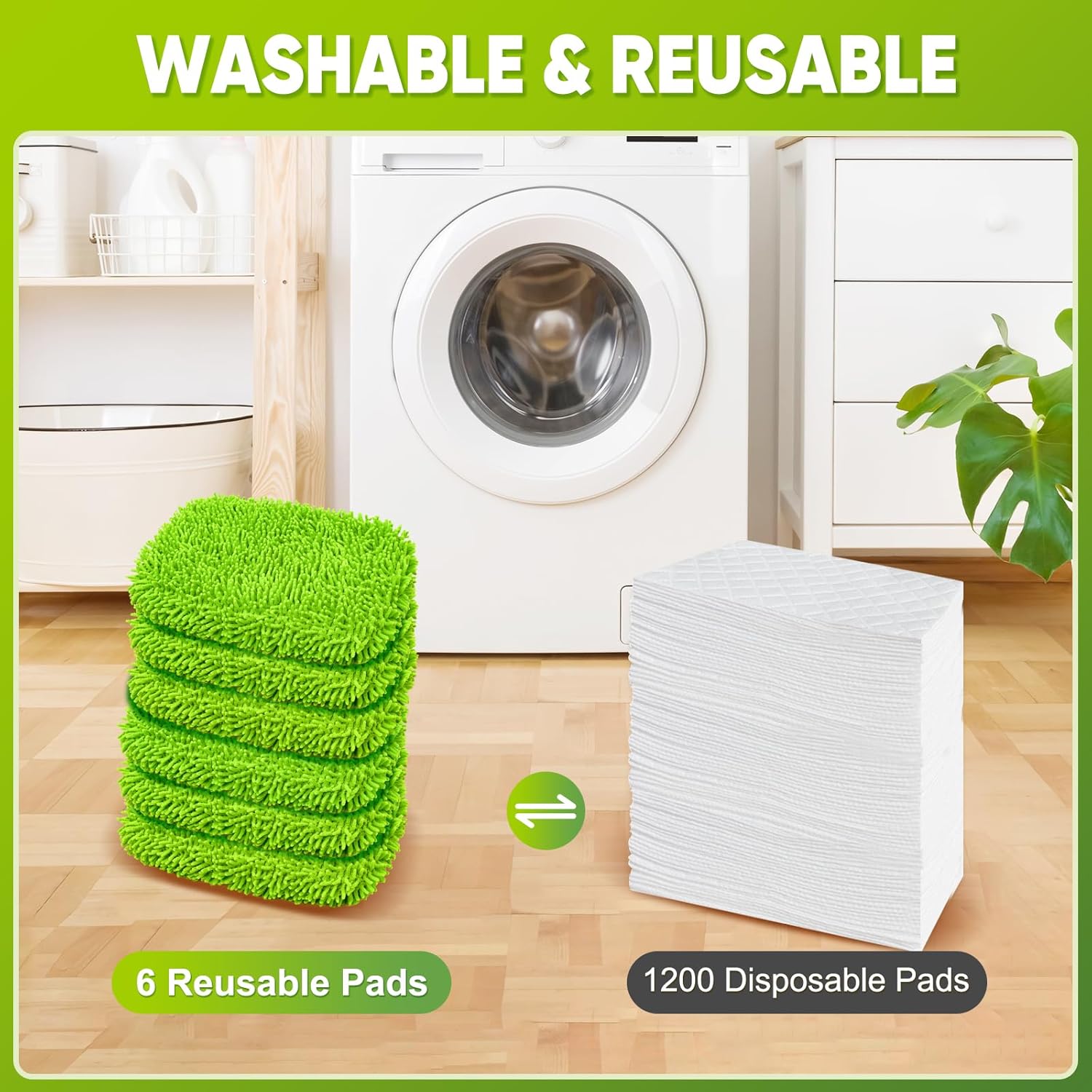 - 🔹【Exceptional Value Pack】This set includes 6 reusable mop pads, each capable of being used 200+ times—totaling over 1200 uses! A cost-effective and eco-conscious alternative to disposable Swiffer pads. (Note: Mop handle not included.)