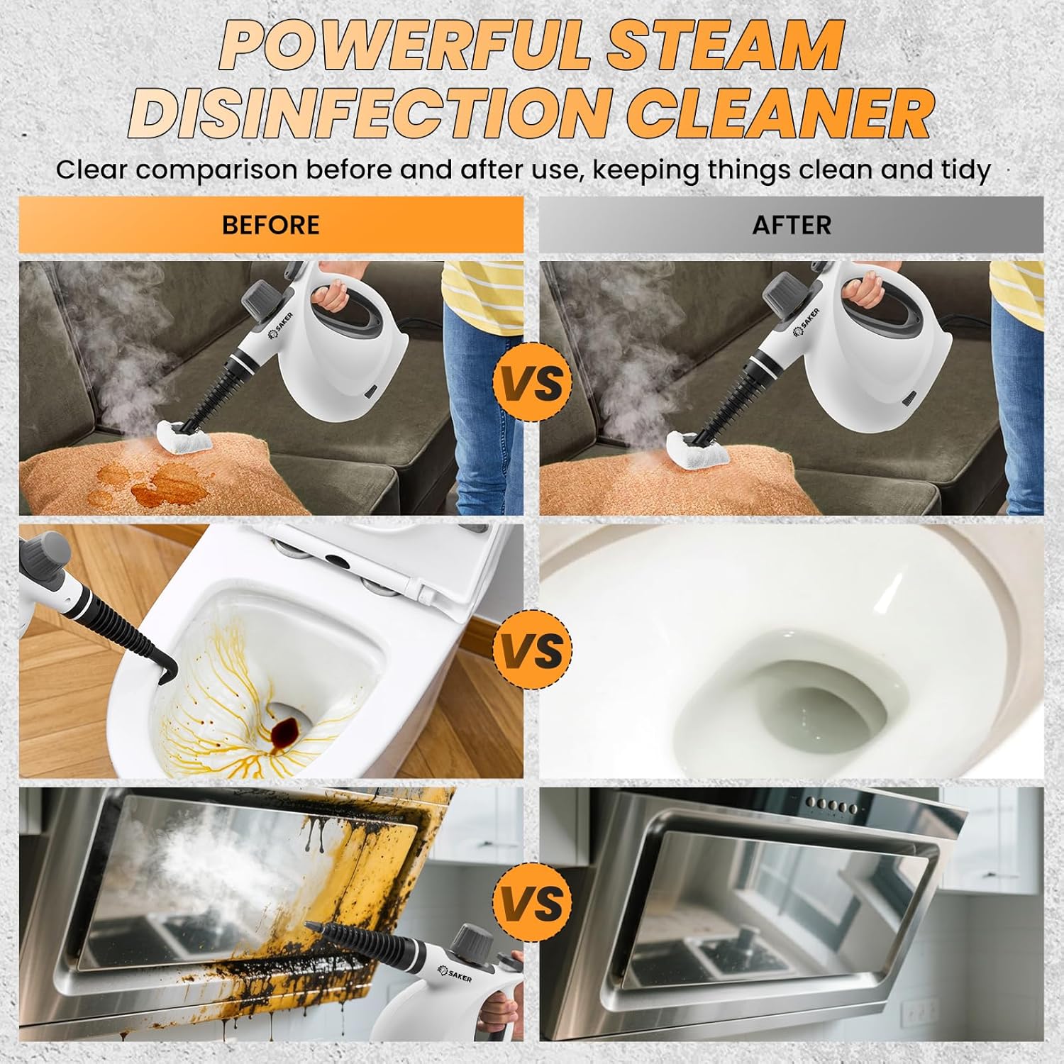 Saker Handheld Steam Cleaner New,Portable Steam Cleaner for Home,1050W Steam Cleaner,9 Fiber Cloths for Quick Heating & Deep Cleaning of Floors, Cars, and Kitchen