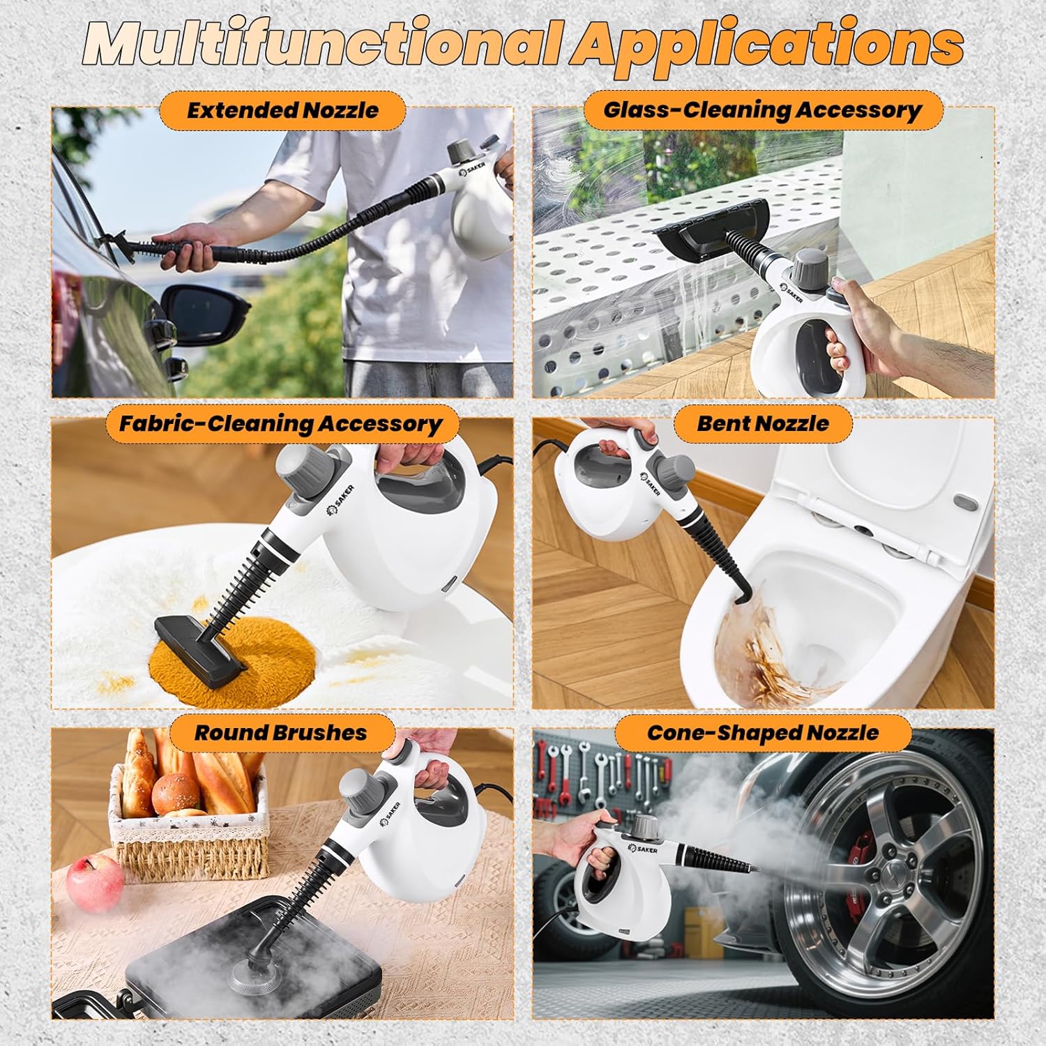 - 【Multiple Usage Scenarios】The Saker handheld steam cleaner works effectively on nearly all hard surfaces. Ideal for cleaning tiles, sinks, stovetops, windows, sofas, and cars. It’s perfect for deep-cleaning bathrooms, kitchens, and more—without harsh chemicals.