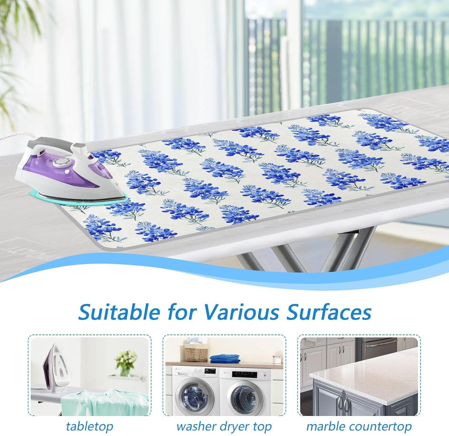 Watercolor Bluebonnets Ironing Mat for Table top Portable Ironing Pad Blanket for Washer Dryer Countertop Travel