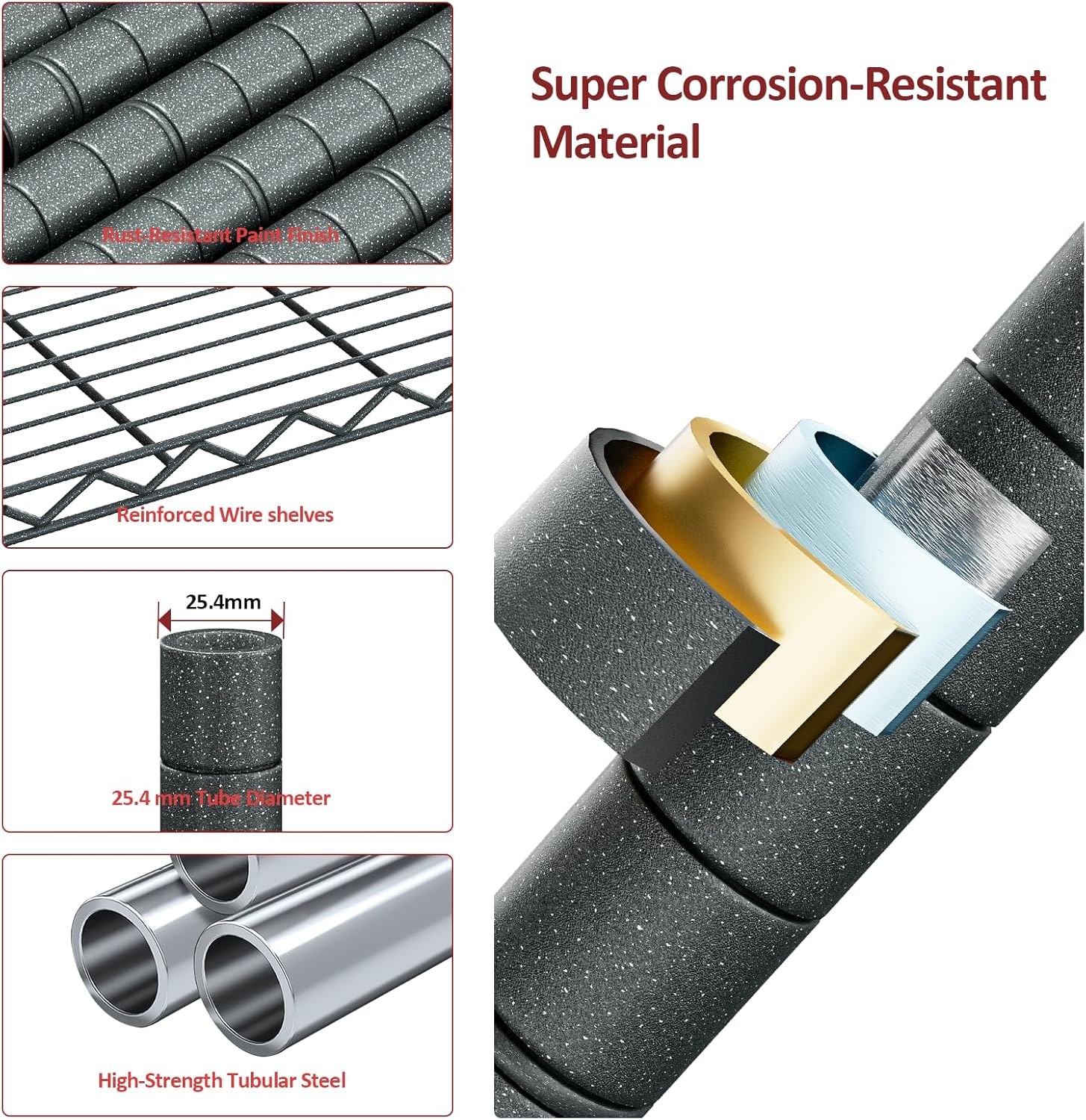 - Size : 4 Tier, 17.7" D x 35.43" W x 59" H