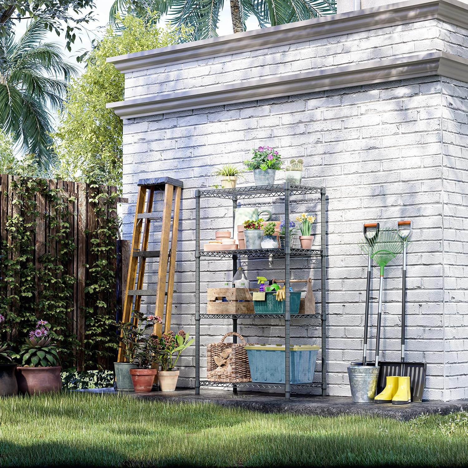 - IZEUK Storage Shelves Outdoor Wire Shelving Unit Metal Rack 4 Tier, 17.7" D x 35.43" W x 59" H, Grey