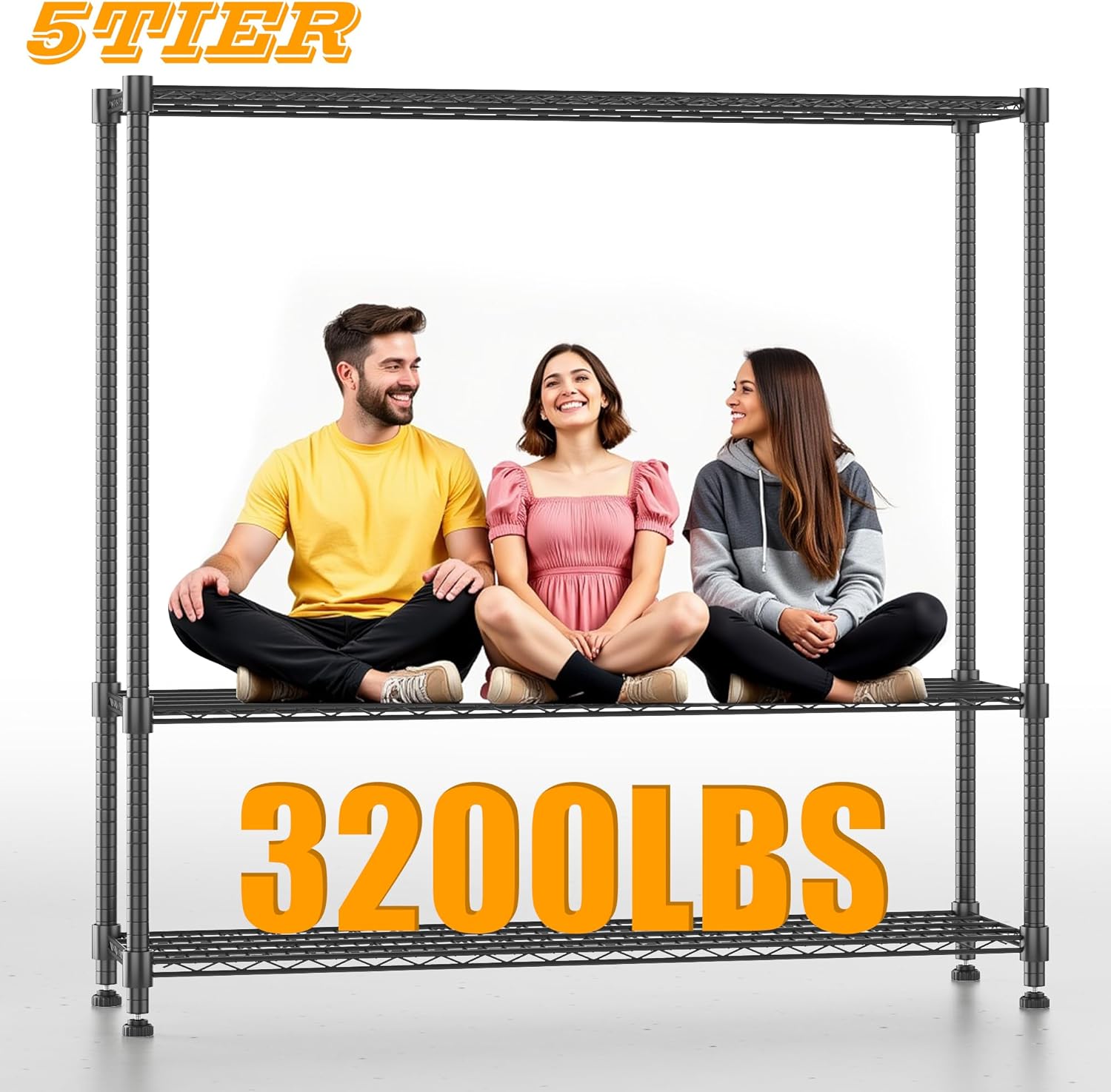 - 【LARGE CAPACITY】Our storage rack is made of sturdy carbon steel and 25mm metal rods and each shelving unit holds up to 640LBs on leveling feet,with a total bearing capacity of 3200LBS