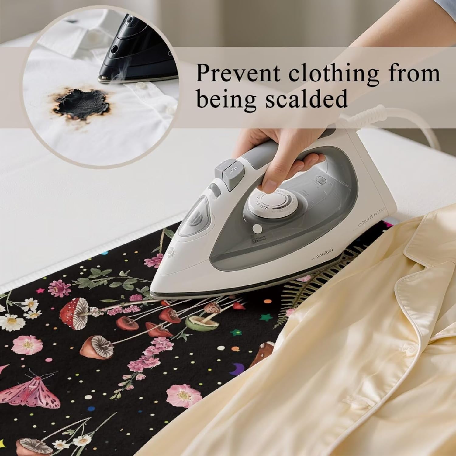 - 【Function】: Laminated with a soft fiber pad, this mat offers dual benefits: heat absorption to lock in warmth for faster ironing, and steam permeability to ensure creases release evenly, protecting tables, beds, or countertops from burns while reflecting heat back to your garment