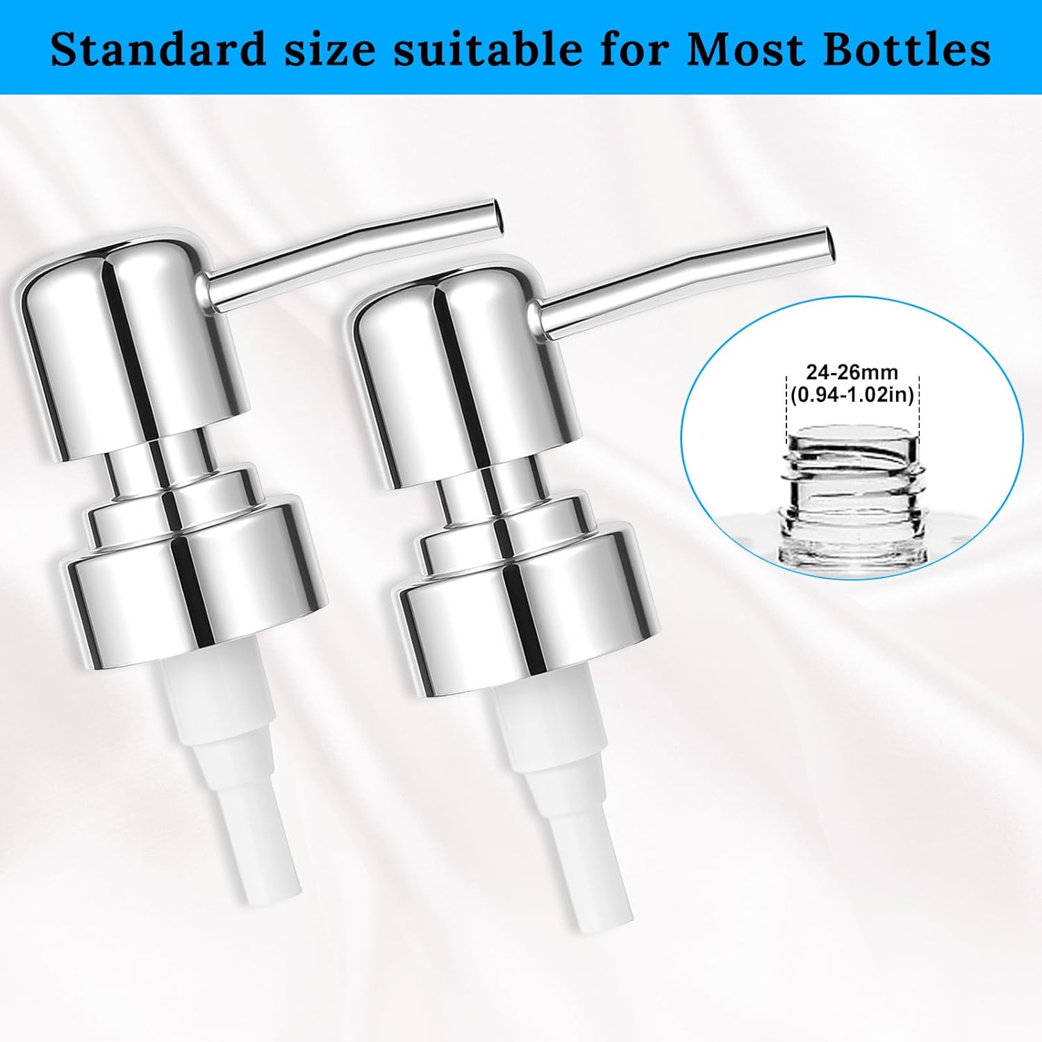- Multipurpose: Our soap dispenser pump can perfectly match the caliber and shape of most soaps, lotions, facial cleansers, etc. Bottles are on the market and are an ideal pump head replacement for these daily cleaning and skin care products.