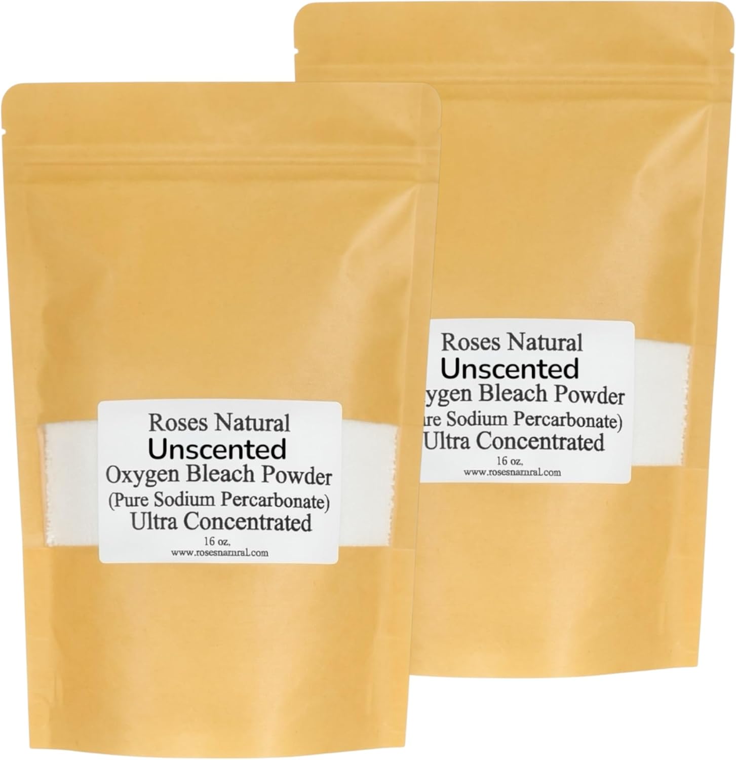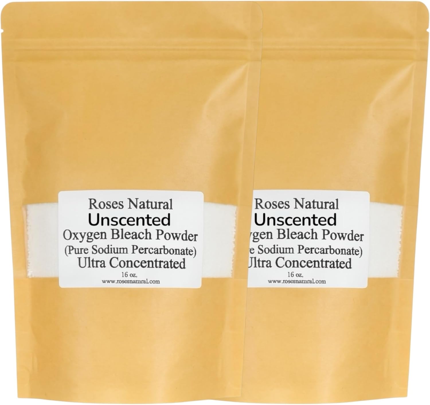 Pure Oxygen Bleach Powder, 32 oz. Ultra Concentrated Bleach Alternative, Pure Sodium Percarbonate, Chlorine Free, Pure Essential Oil, Color Safe Brightener (Unscented - 32 oz)