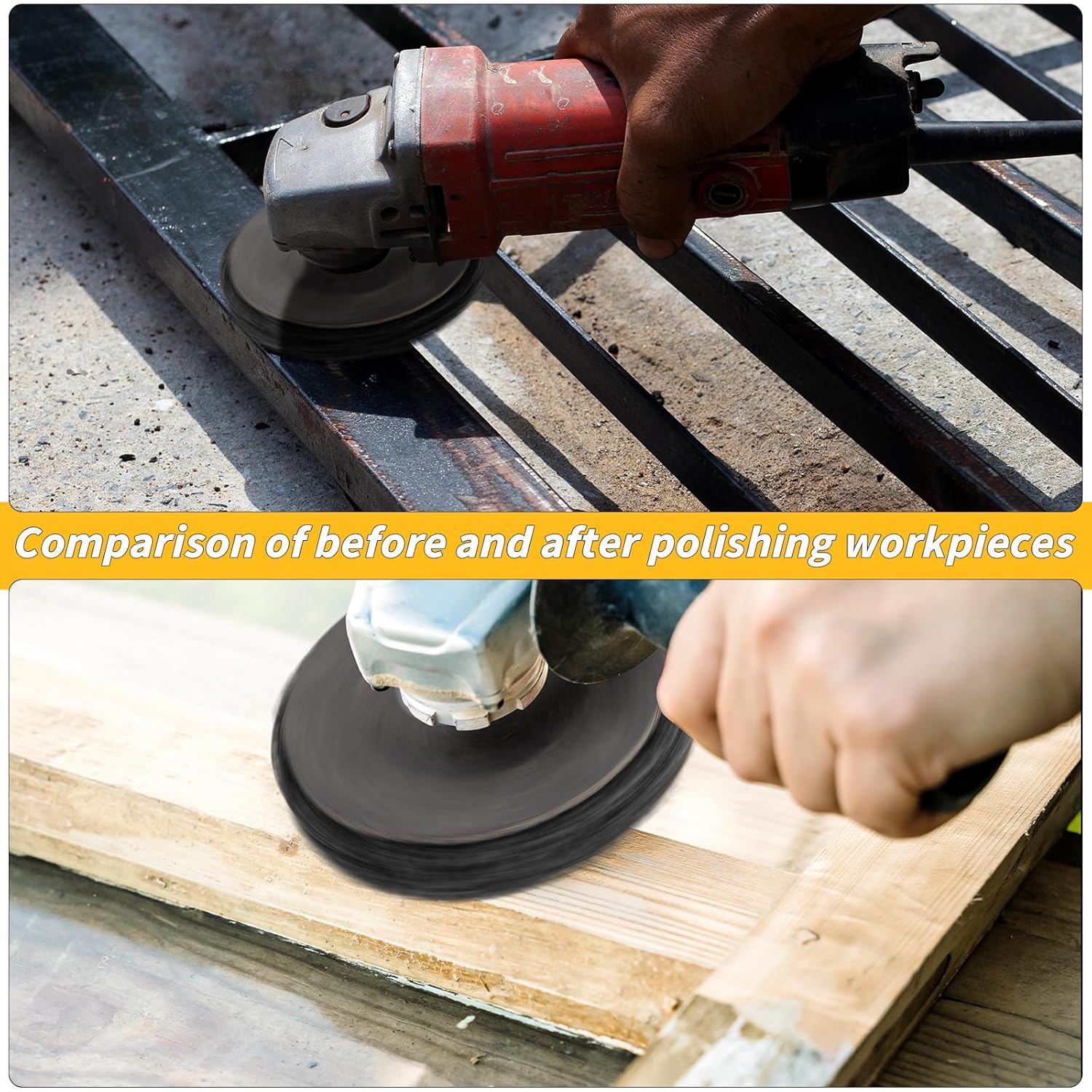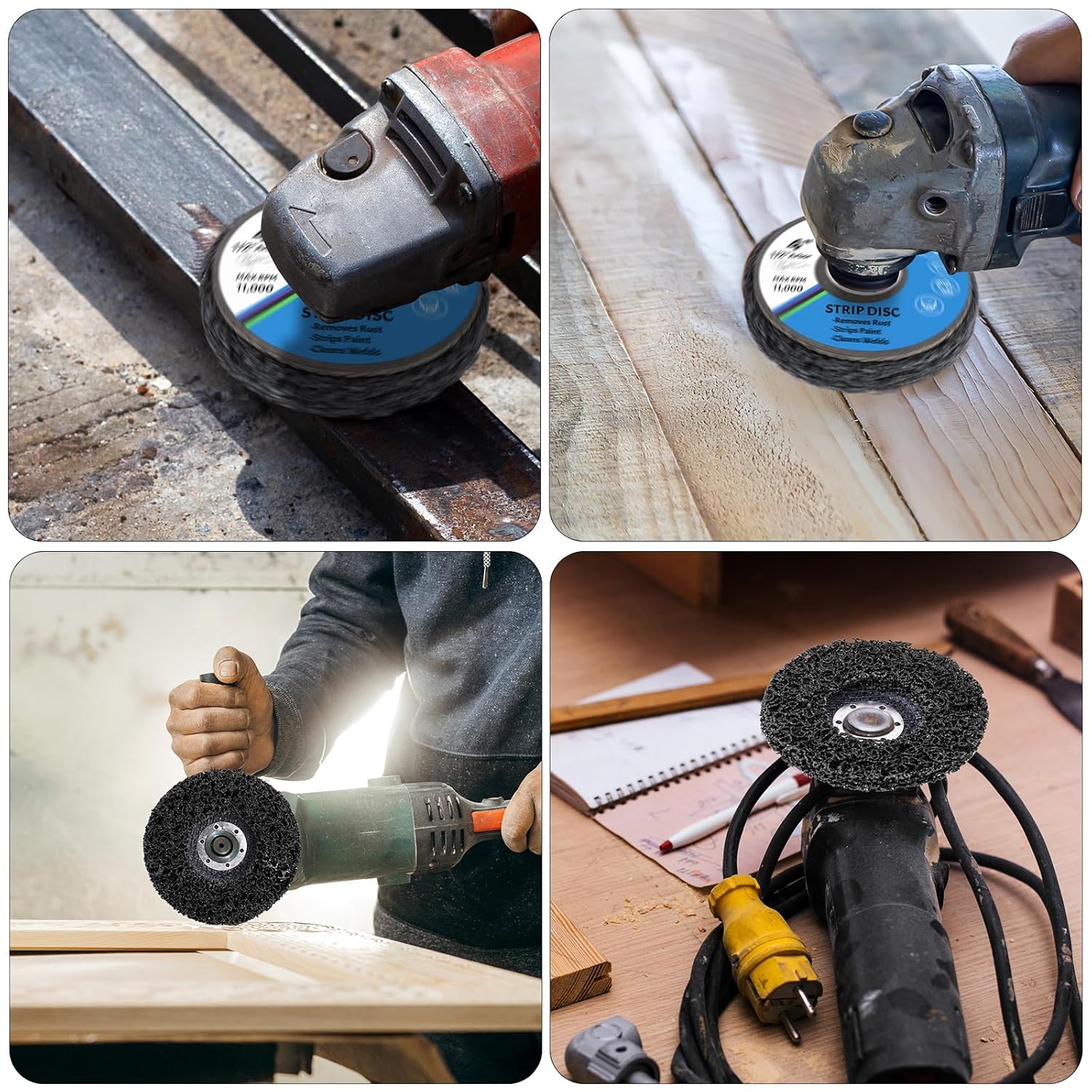 - High-Performance: The paint stripping wheel boasts robust functionality, capable of tasks such as grinding welding joints, removing burrs from oil pipes, ceramic polishing, paint stripping, rust and oxide removal. Our Strip Discs has even friction and is not easy to deform, so that you can finish your work efficiently, and it has lower noise and less dust when using.