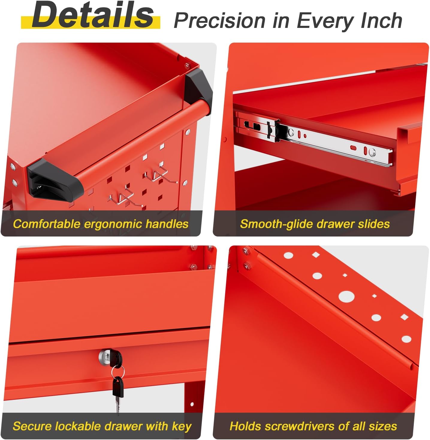 - Easy Mobility & Safety – Rolling utility cart with 4 casters (2 lockable). Smooth, quiet, and stable. Perfect rolling cart with drawers for garage, warehouse, or repair shop.