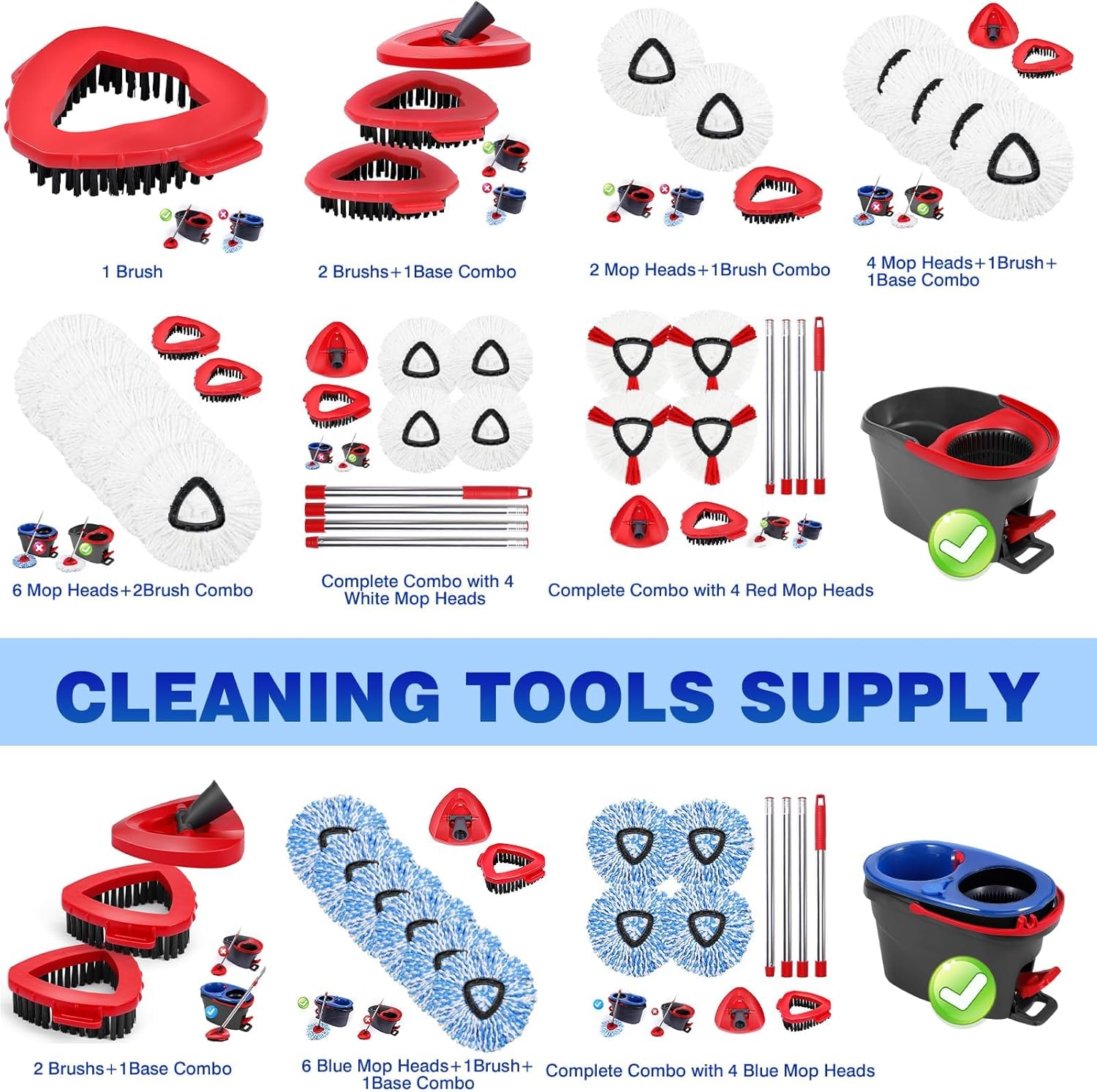 4 Pcs Mop Replace Heads & 1 Scrub Brush & 1 Base Combo for Ocedar Easywring 2-Tank System Microfiber Spin Mop Replacement Head,Machine Washable for Bathroom,Kitchen,Tub and Tile(Blue)