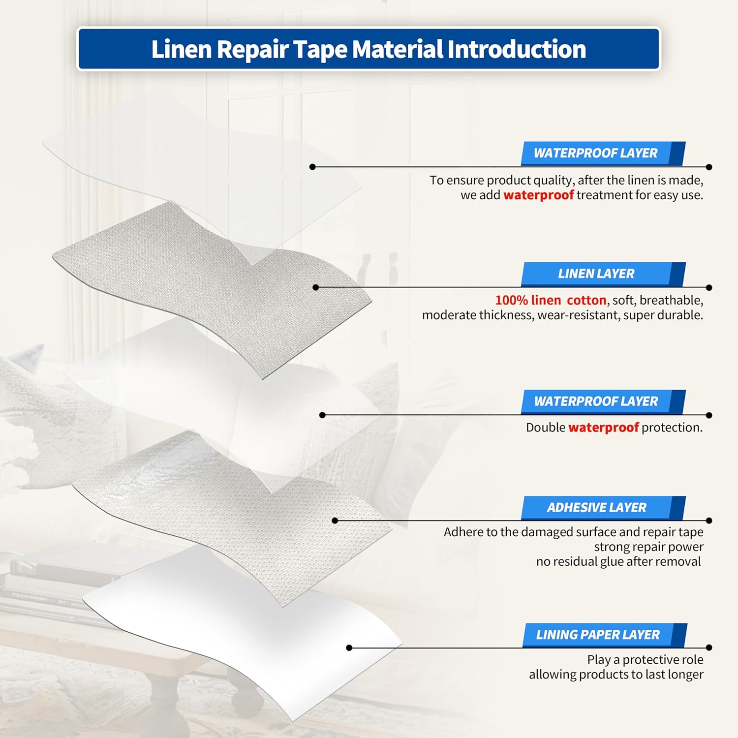 - Strong Self-Adhesive: The craftsmanship of the linen repair kit has been upgraded, using strong adhesive to ensure excellent bonding effect, specially developed for repairing various fabric products, ensuring that the repaired area can be used for a long time without easily falling off.