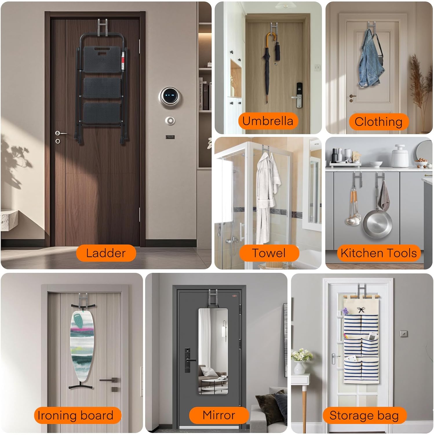 - Smart Dual-Hook & Stable Design: The door hanger hooks design with Double-Hooks, create more hanging space. It also crafted with 2 stabilizer, prevent tilting when unevenly loaded, allow the door to close without obstruction