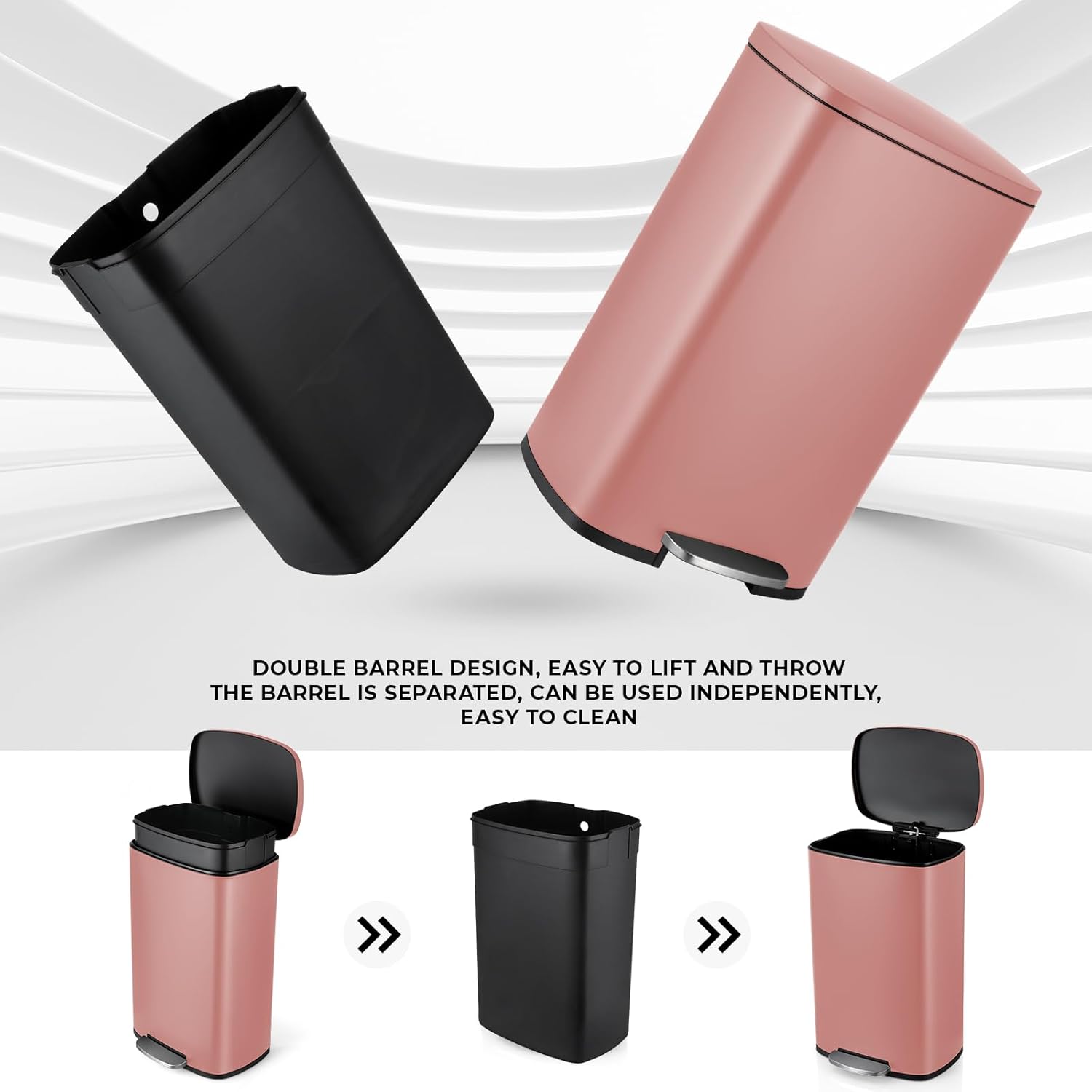 - Large&Enduring Foot Pedal: Stainless trash can features 5.9" wide pedal, providing a comfortable stepping surface, making it effortless to open the lid. It is crafted from sturdy stainless steel ensuring smooth and reliable operation for years to come