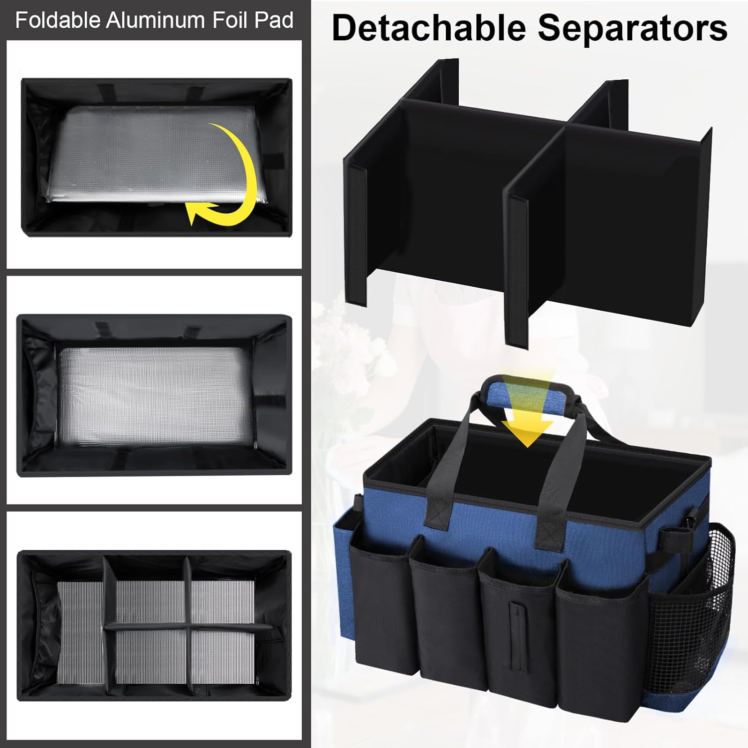 - High Quality Materials: Our cleaning caddy bag are made of 600d oxford fabric, which has excellent abrasion and tear resistance. The left and right sides are lined with 5mm hollow hardboard. The bottom is a reversible folding board, hollow board foam cotton lining and aluminum foil on the outside, very easy to wipe clean
