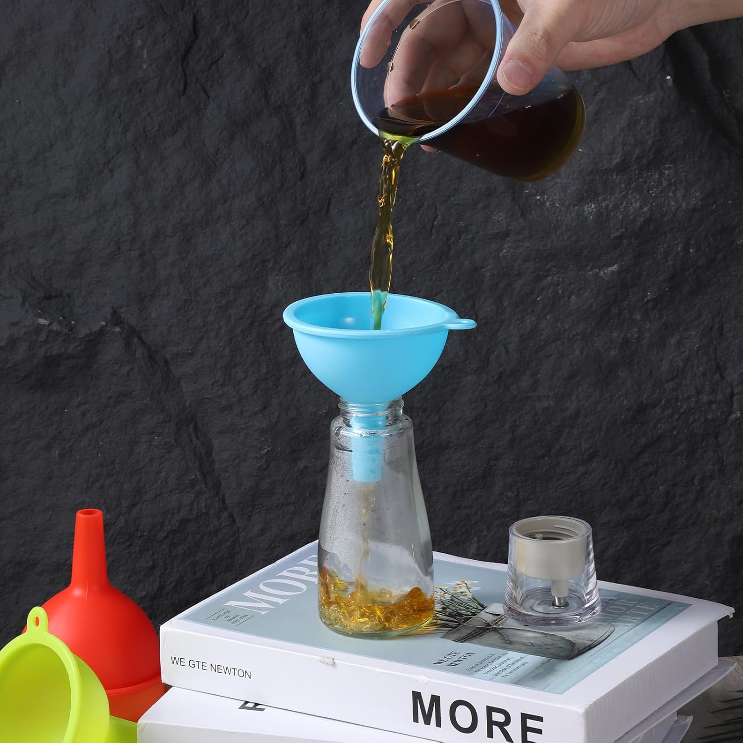 - 【Complete Funnel Set】This 4-piece silicone kitchen funnel set provides versatile solutions for all your transferring needs. The set includes two different sizes specifically designed for wide mouth jars and narrow neck bottles, allowing you to handle various containers from spice jars to large canning jars. Made from flexible food-grade silicone, these funnels won't crack or break like plastic alternatives and maintain their shape during use, making them perfect for both liquid and dry ingredients transfer.