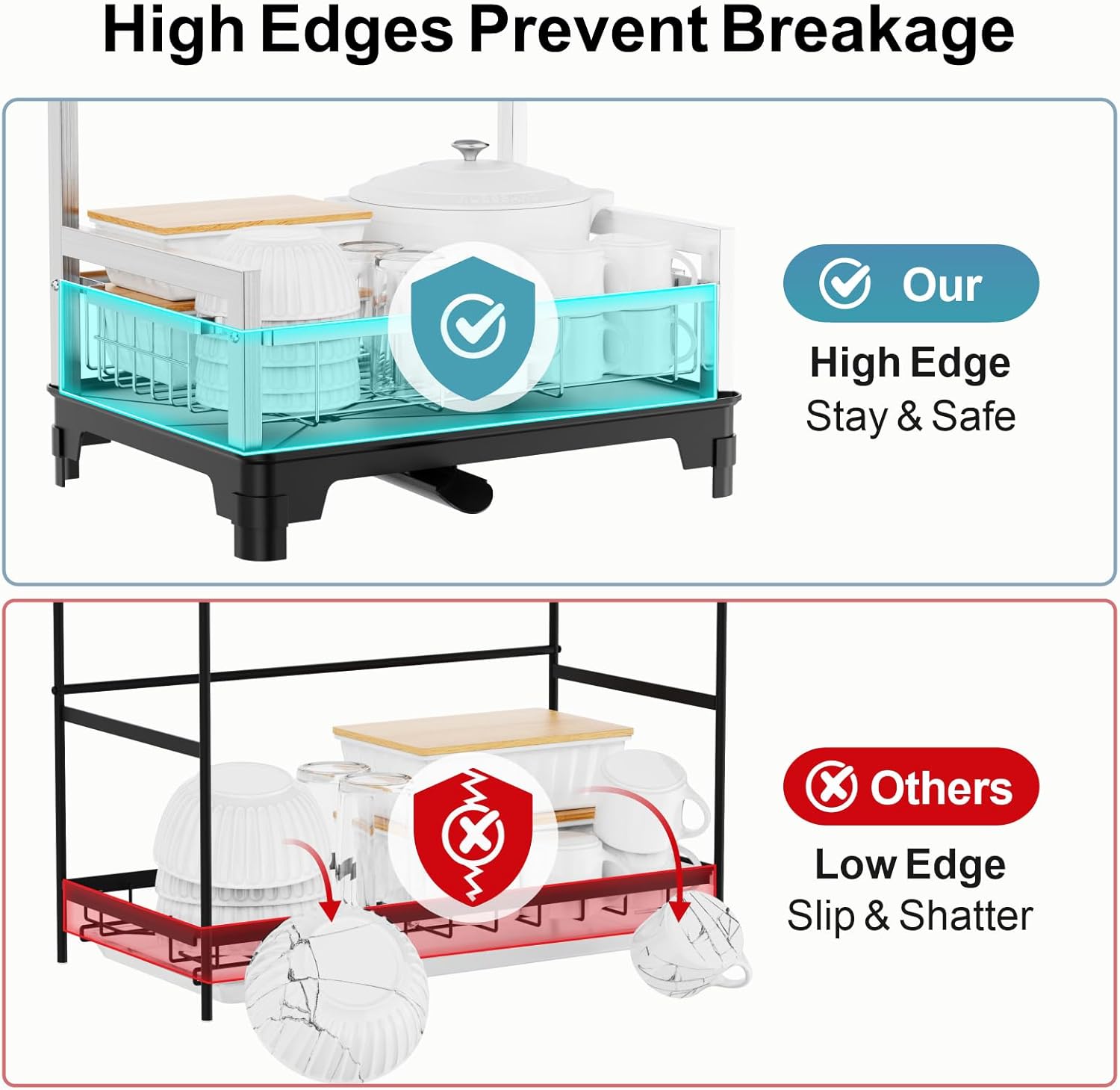 - Built Stronger for Maximum Stability: Our square tube frame is twice as thick as standard racks, providing rock-solid support without wobbling. The high-side guardrail prevents dishes from sliding or tipping, keeping your tableware secure.