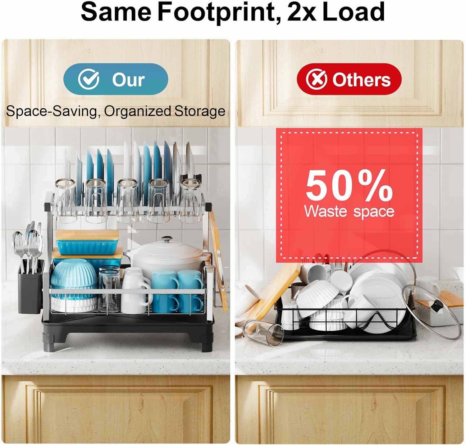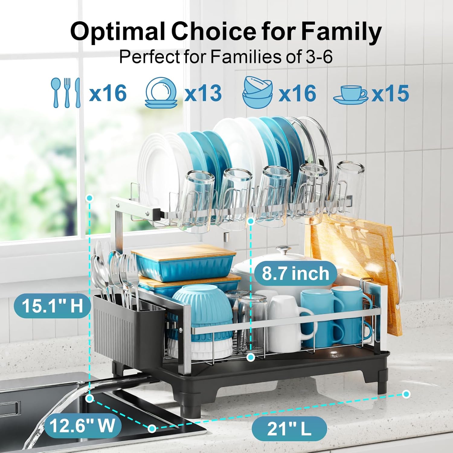 - Space-Saving 2-Tier Design for Small Kitchens: Maximize your counter space with this sleek two tier dish drying rack; It measures just 21" L x 12.6" W x 15.1" H; Keep your kitchen clutter-free by using vertical space smartly; Ideal for apartments or homes with limited counter space.