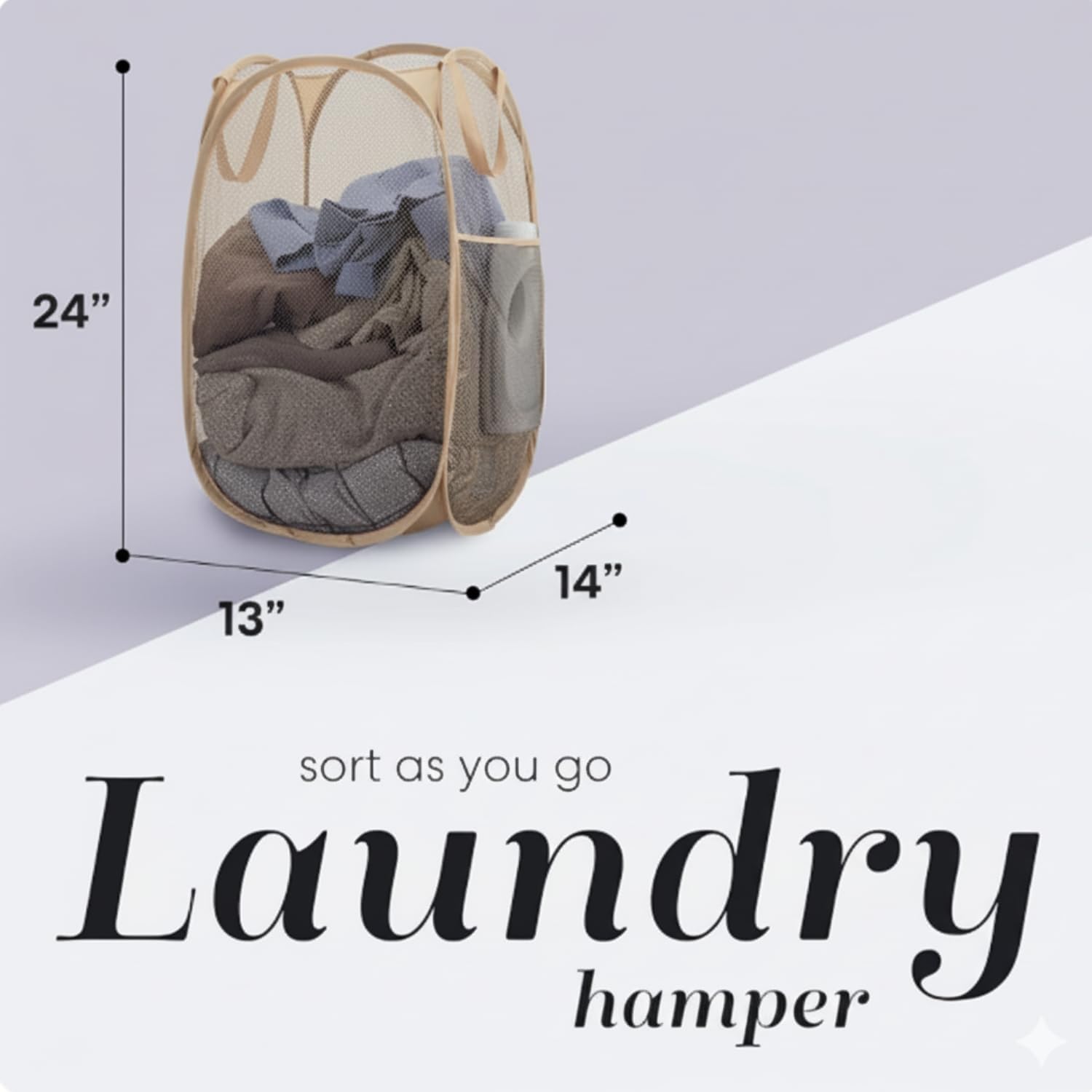 Handy Laundry Collapsible Mesh Pop Up Hamper with Wide Opening and Side Pocket - Breathable, Sturdy, Foldable, and Space-Saving Design for Clothes and Storage (Beige)