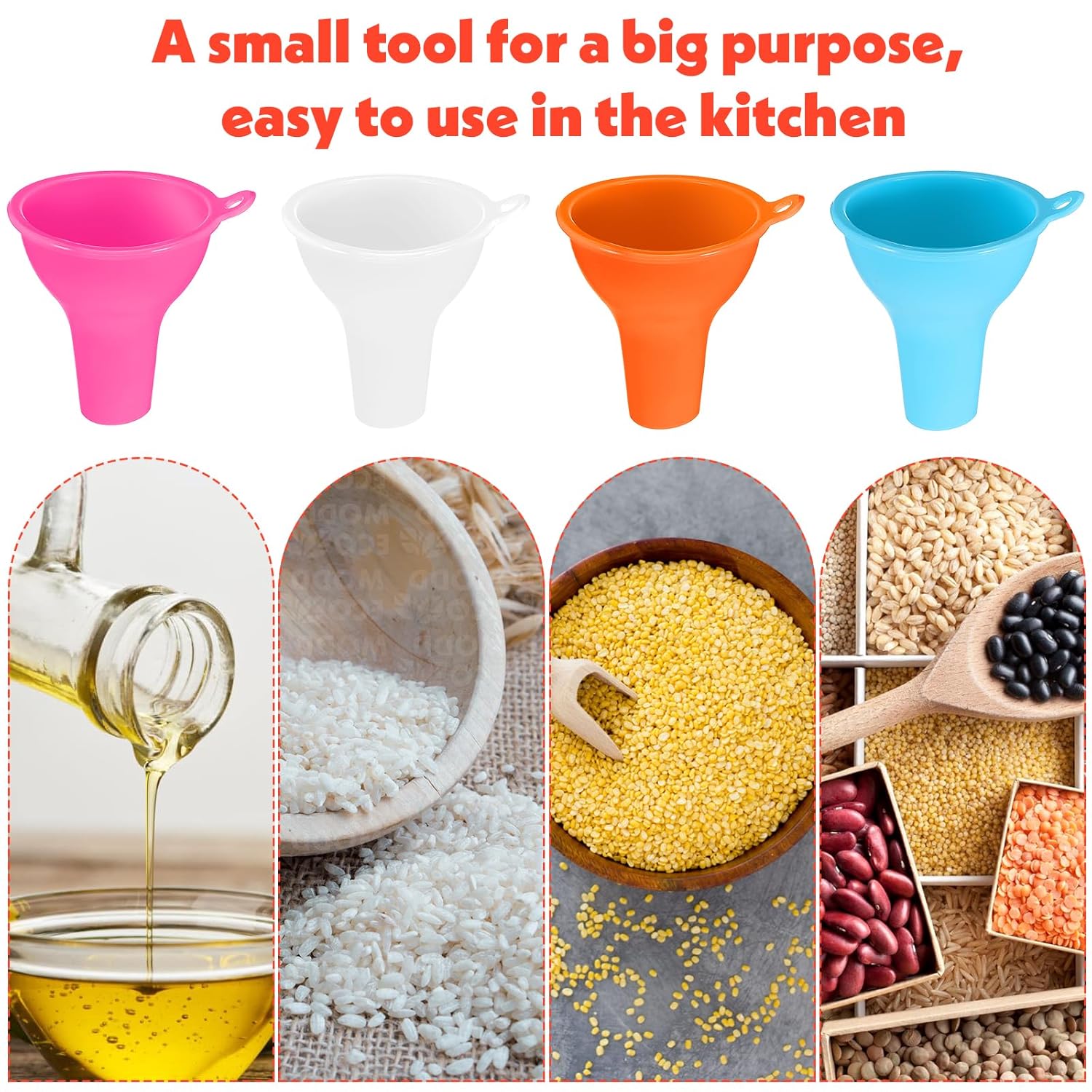 4 Pcs Funnels for Kitchen Use Filling Bottles Silicone Funnel Wide Mouth Funnel Multi Color Flexible Condiment Funnels Kitchen Gadgets Accessories for Filling Water Bottle Liquid Transfer